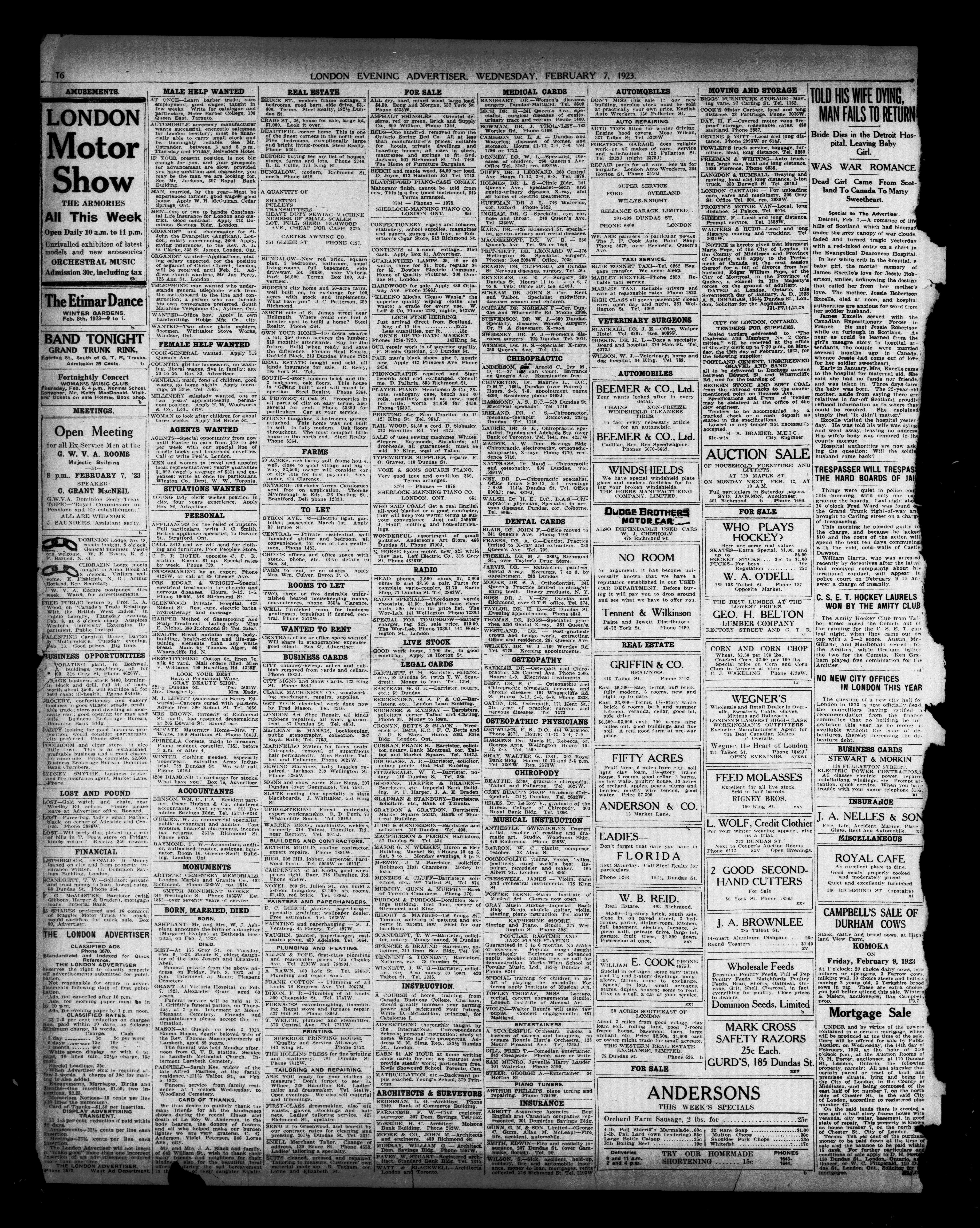 - London Evening Advertiser : 60th Year, No. 23566 (February 7, 1923)