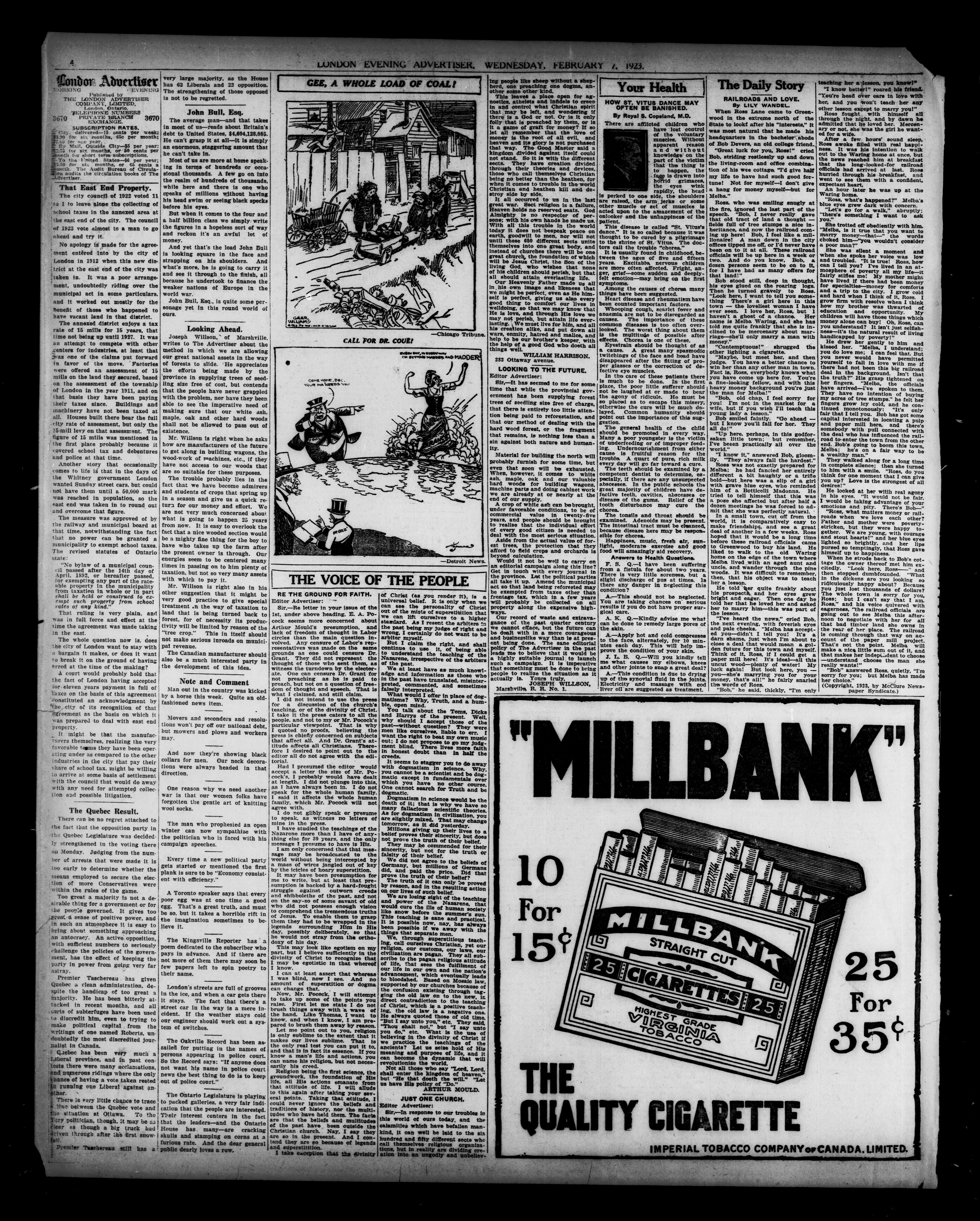 London Evening Advertiser. : London Evening Advertiser : 60th Year, No. 23566 (February 7, 1923)