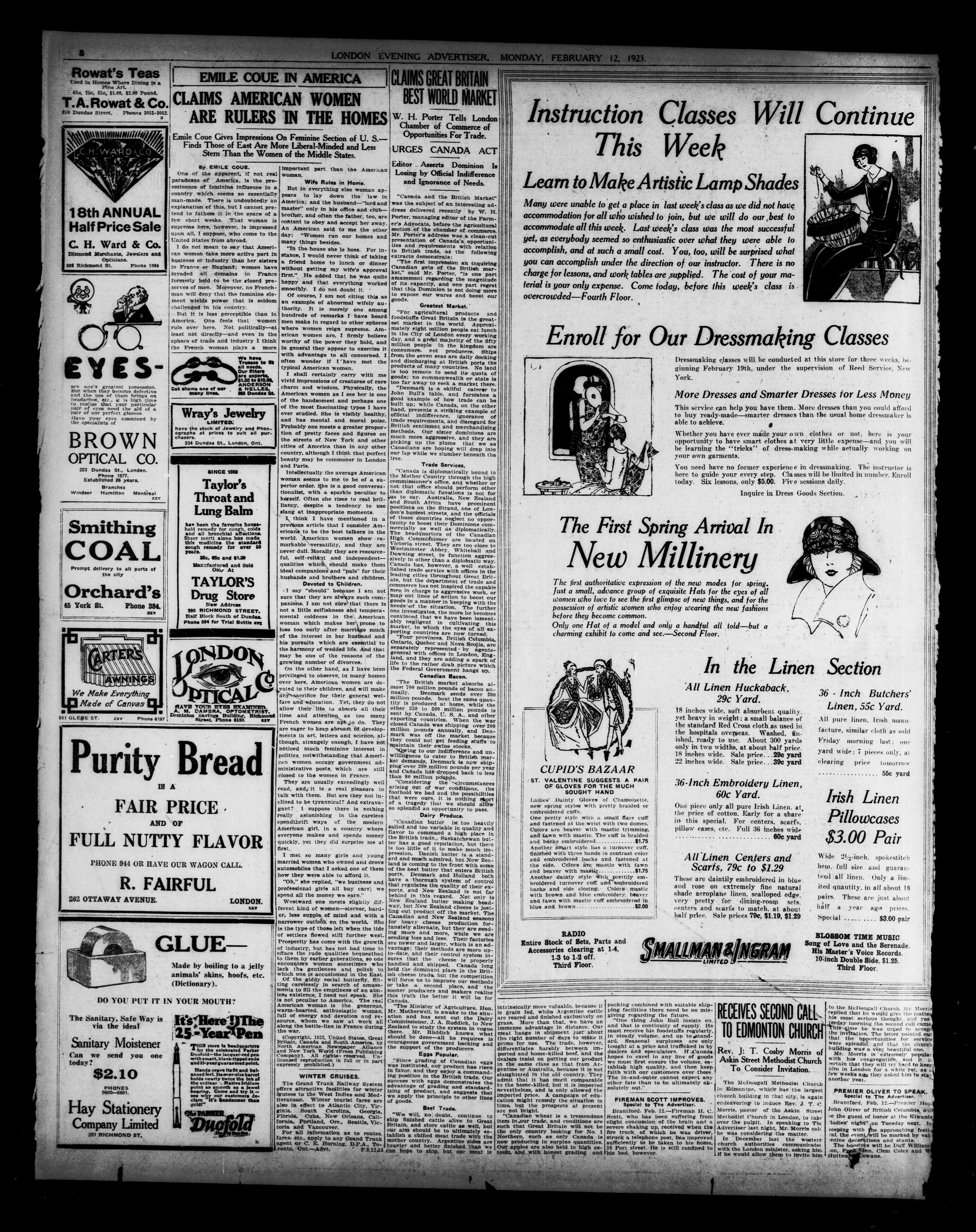 London Evening Advertiser. : London Evening Advertiser : 60th Year, No. 23570 (February 12, 1923)