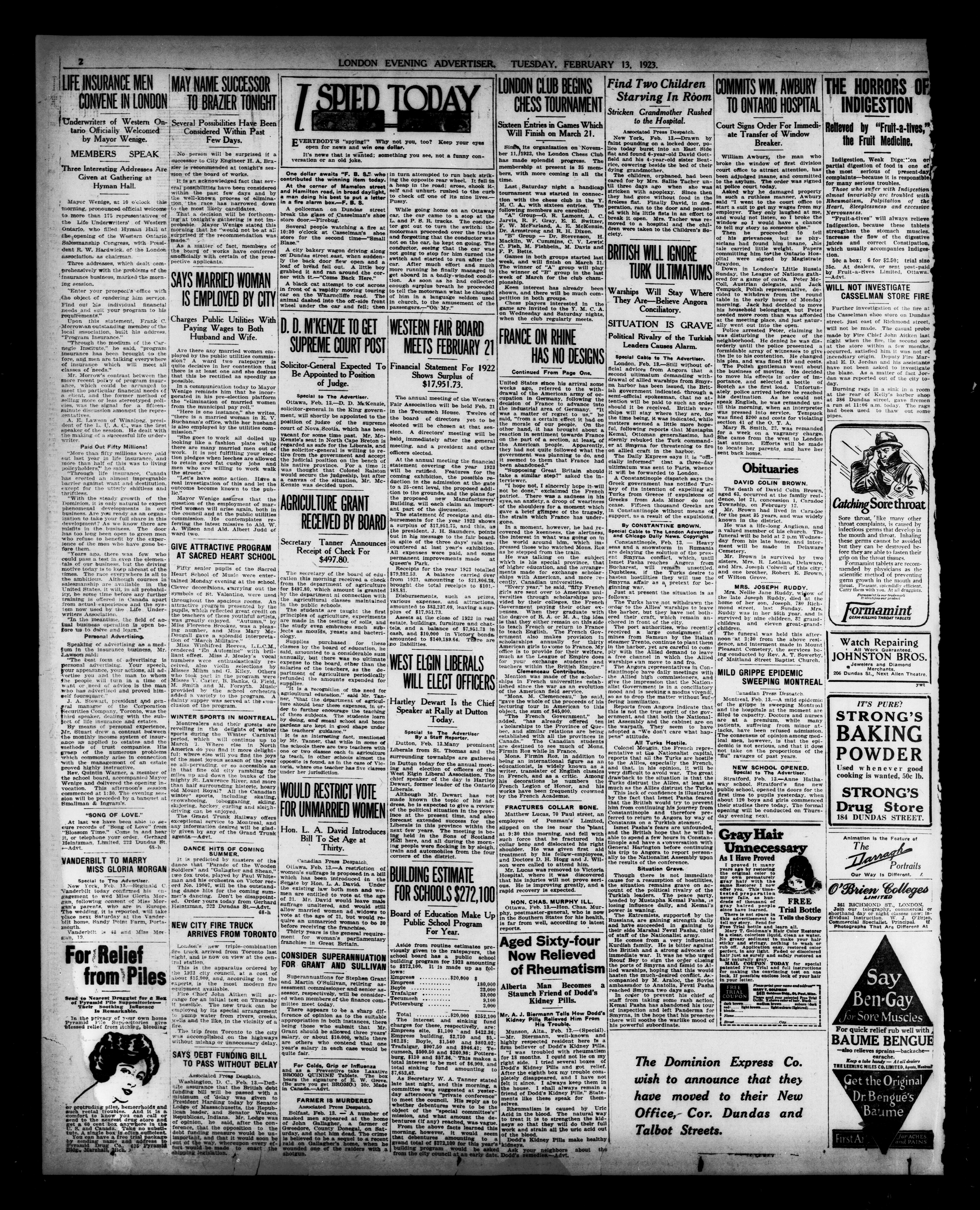 - London Evening Advertiser : 60th Year, No. 23571 (February 13, 1923)