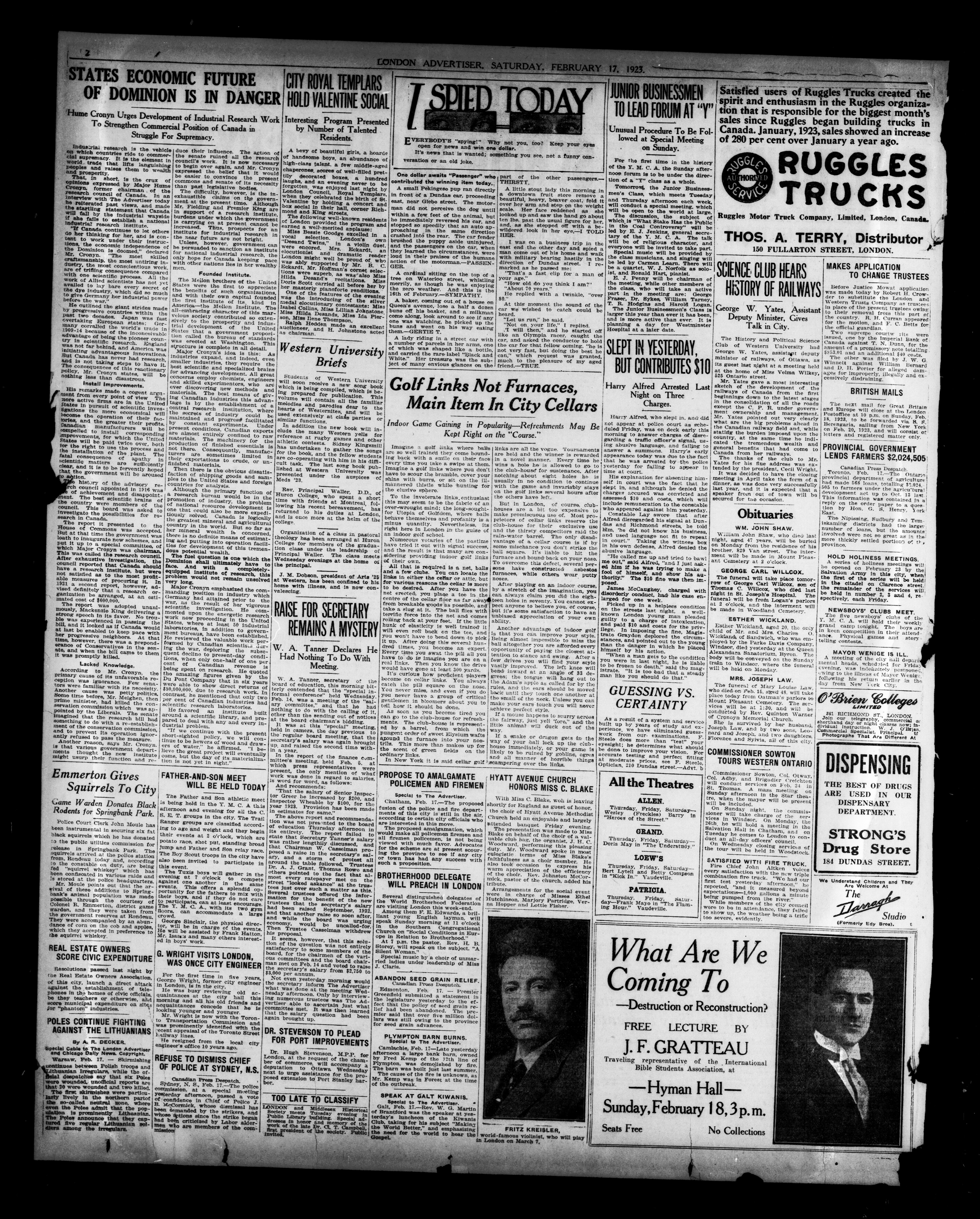 London Evening Advertiser. : London Evening Advertiser : 60th Year, No. 23575 (February 17, 1923)