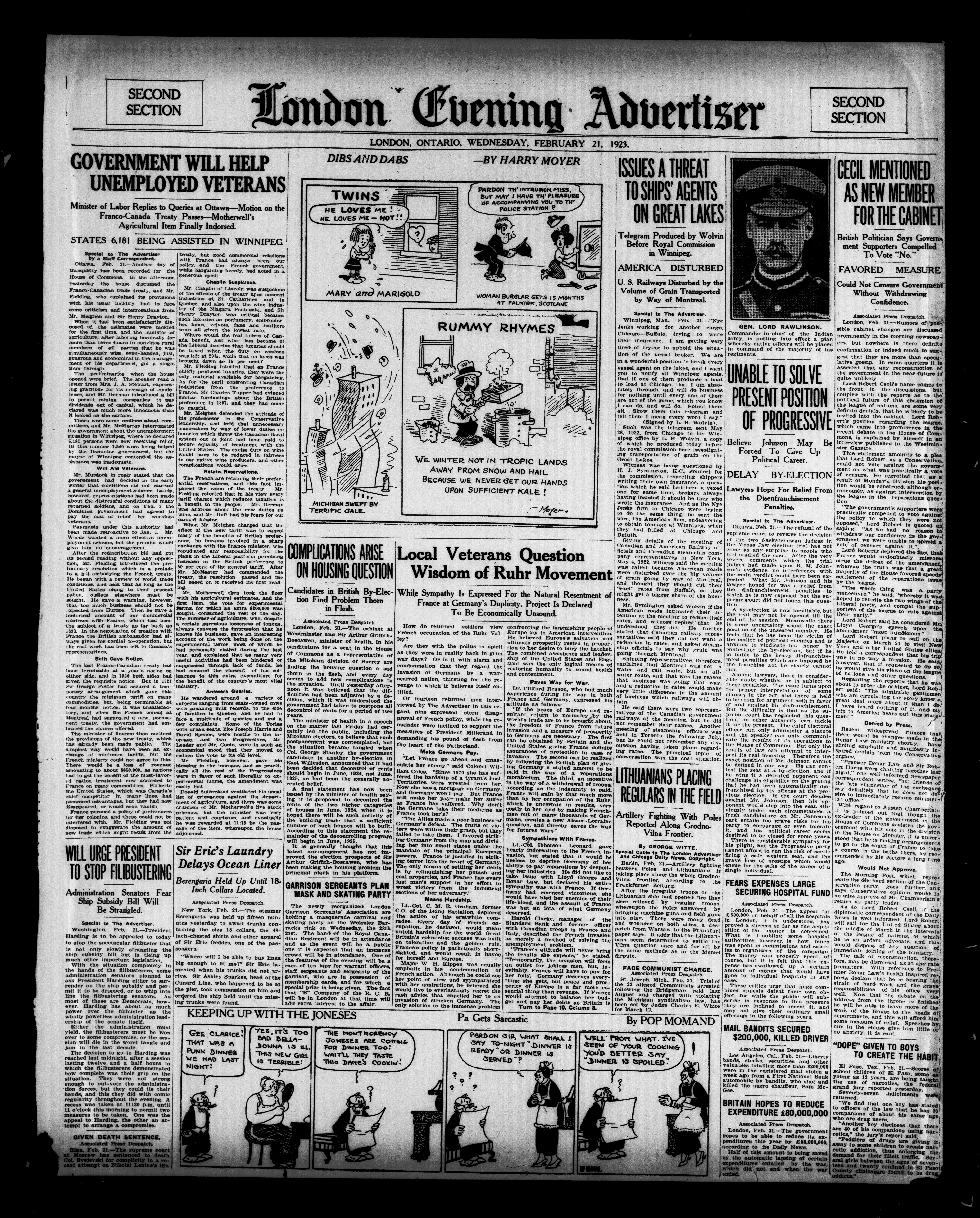 London Evening Advertiser. : London Evening Advertiser : 60th Year, No. 23578 (February 21, 1923)