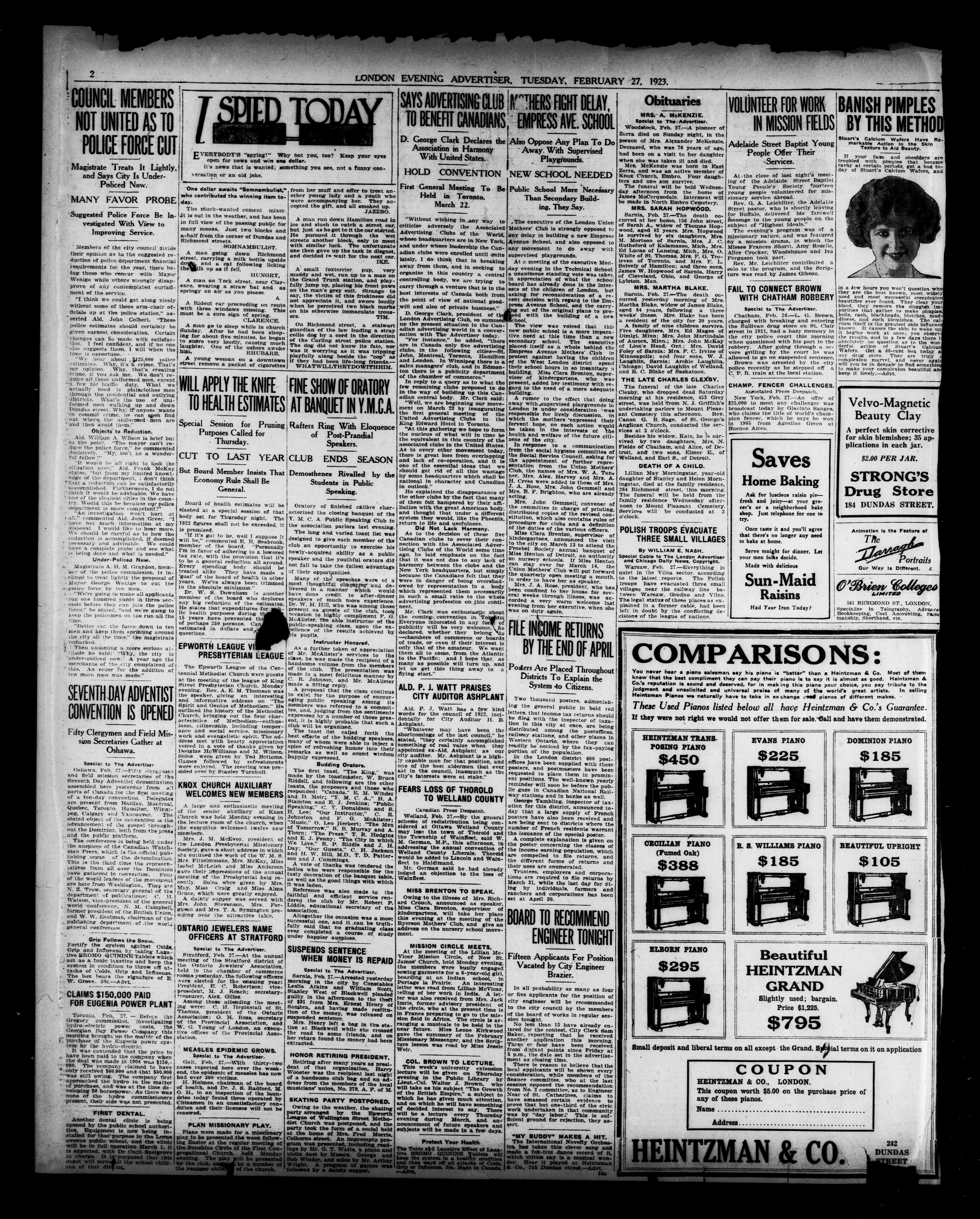 London Evening Advertiser. : London Evening Advertiser : 60th Year, No. 23583 (February 27, 1923)