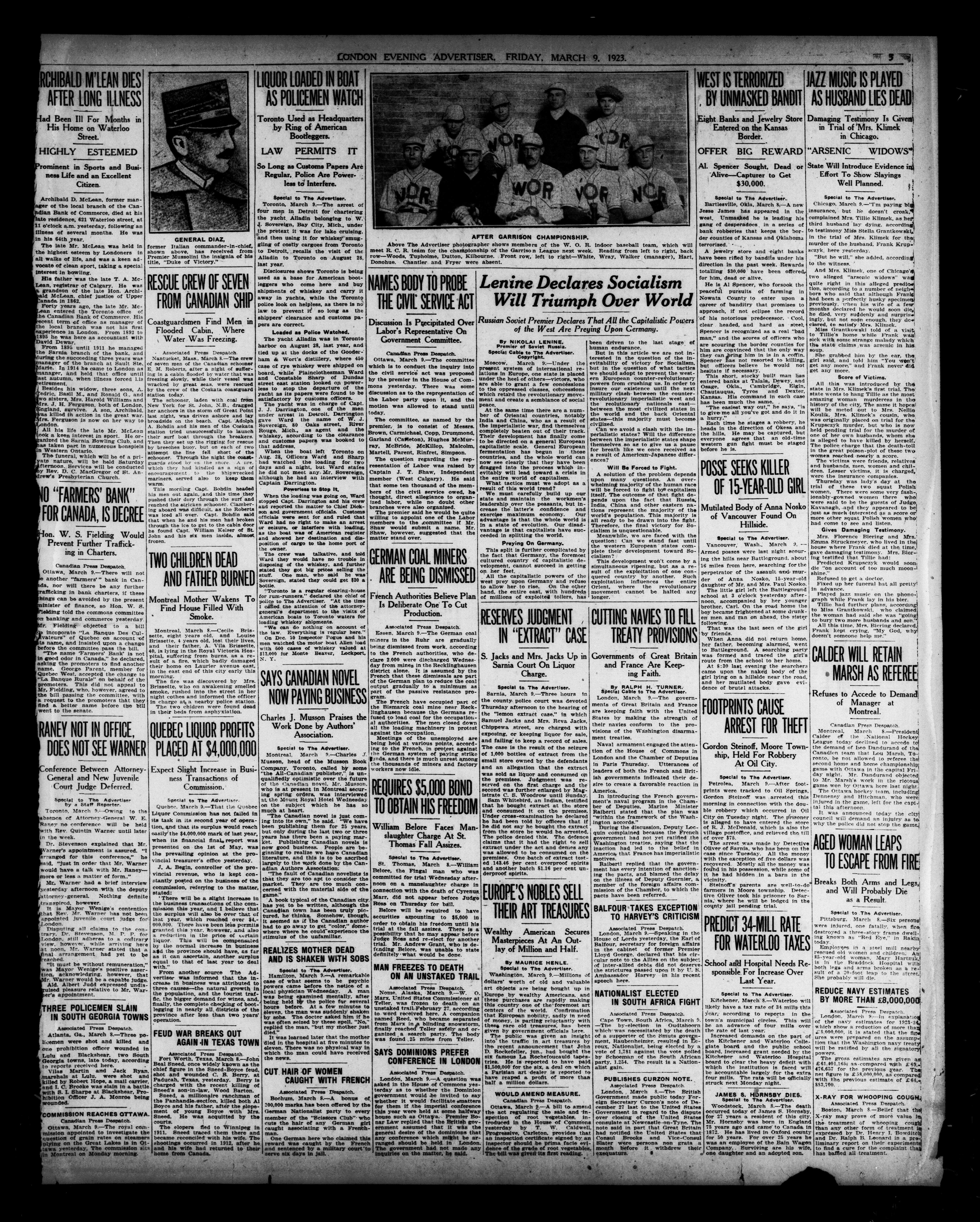 London Evening Advertiser. : London Evening Advertiser : 60th Year, No. 23592 (March 9, 1923)