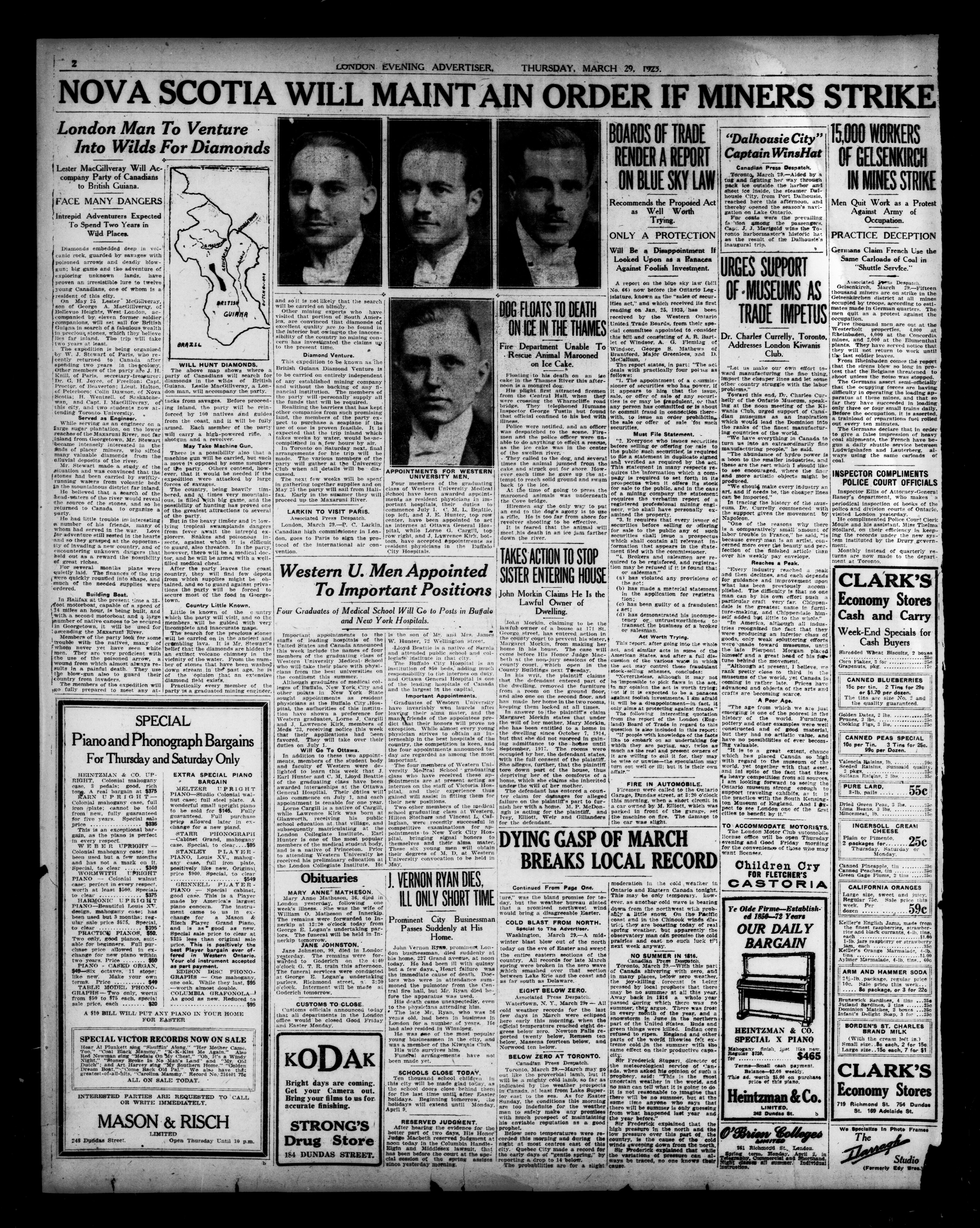 London Evening Advertiser. : London Evening Advertiser : 60th Year, No. 23609 (March 29, 1923)