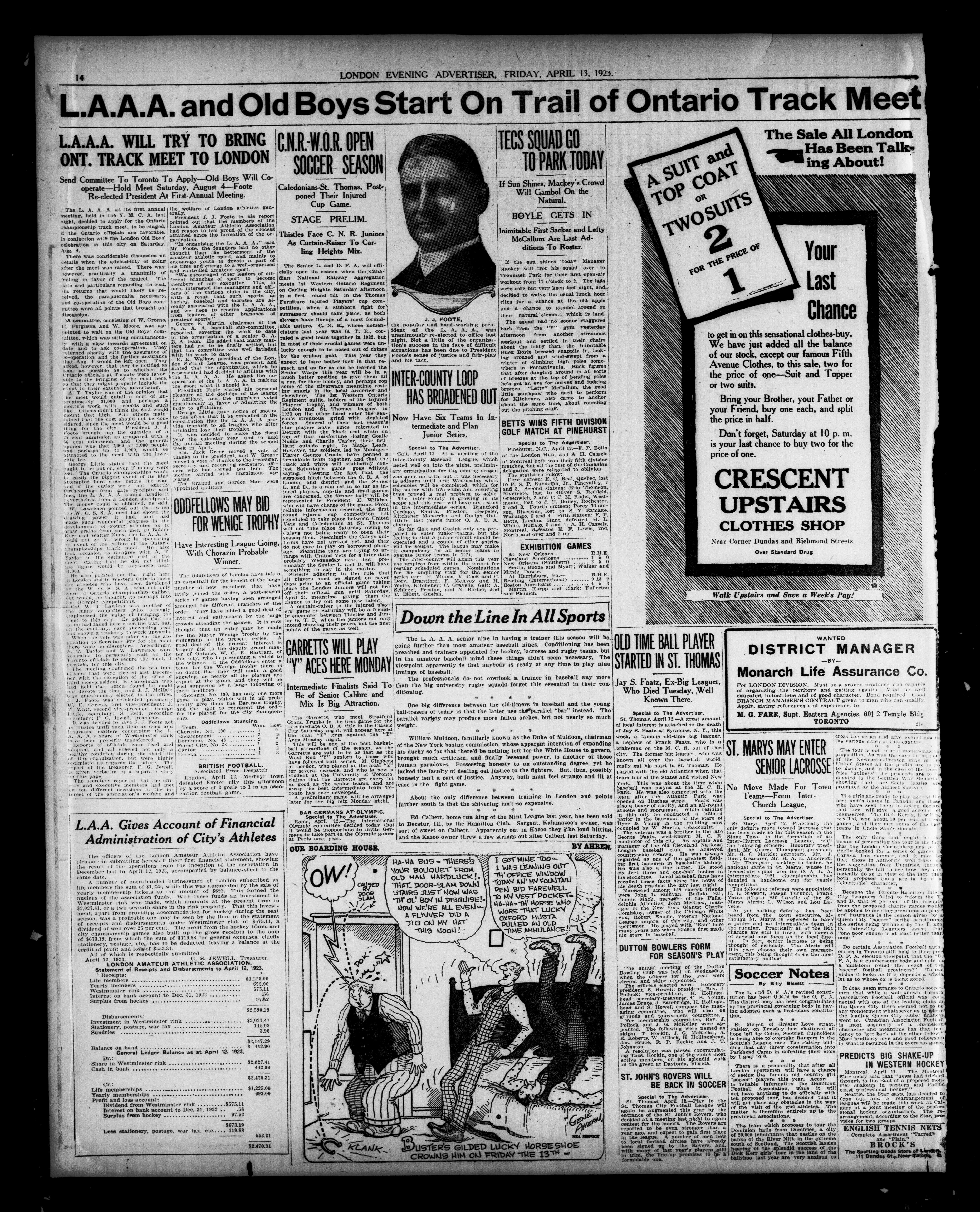 London Evening Advertiser. : London Evening Advertiser : 60th Year, No. 23622 (April 13, 1923)