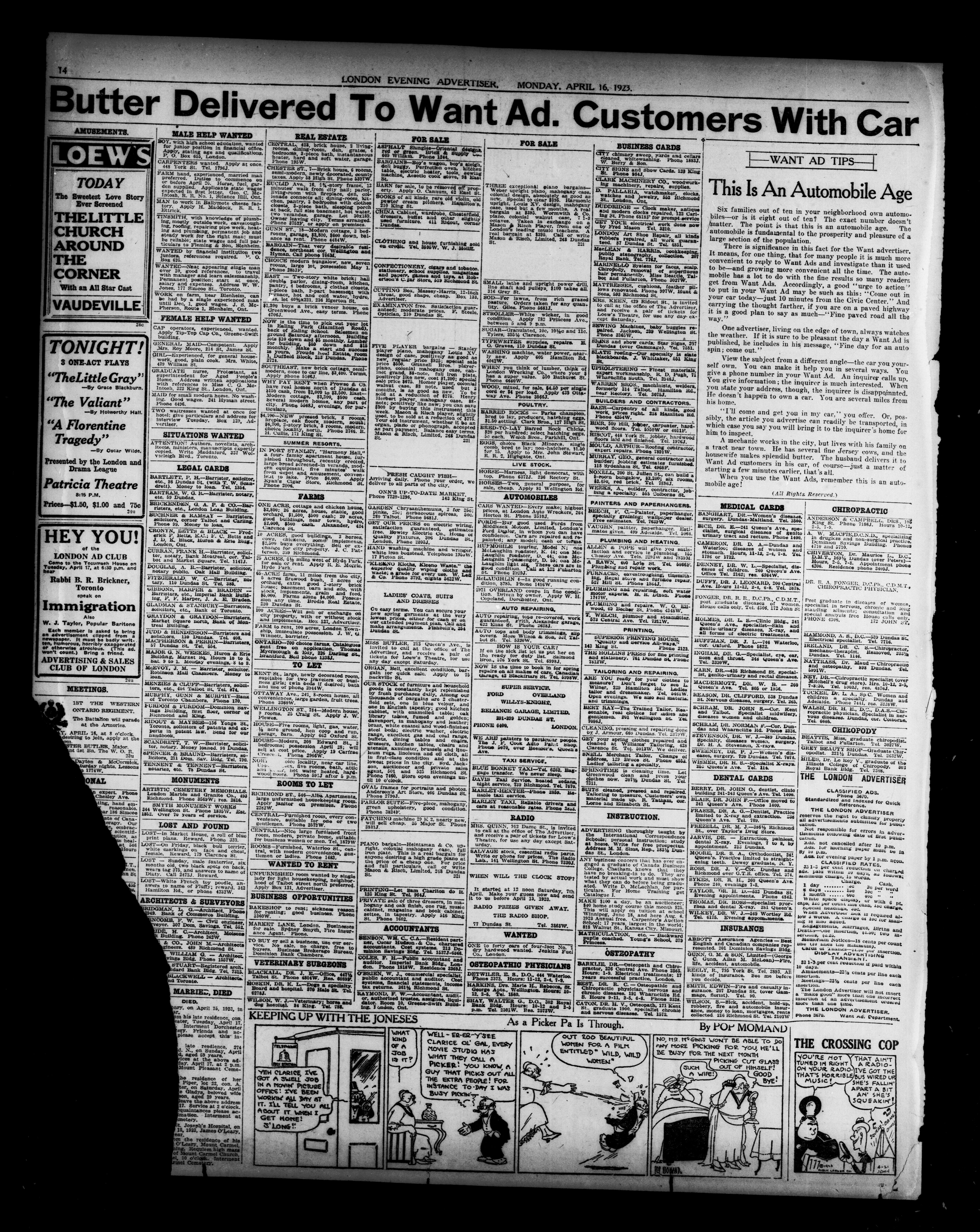 London Evening Advertiser. : London Evening Advertiser : 60th Year, No. 23624 (April 16, 1923)