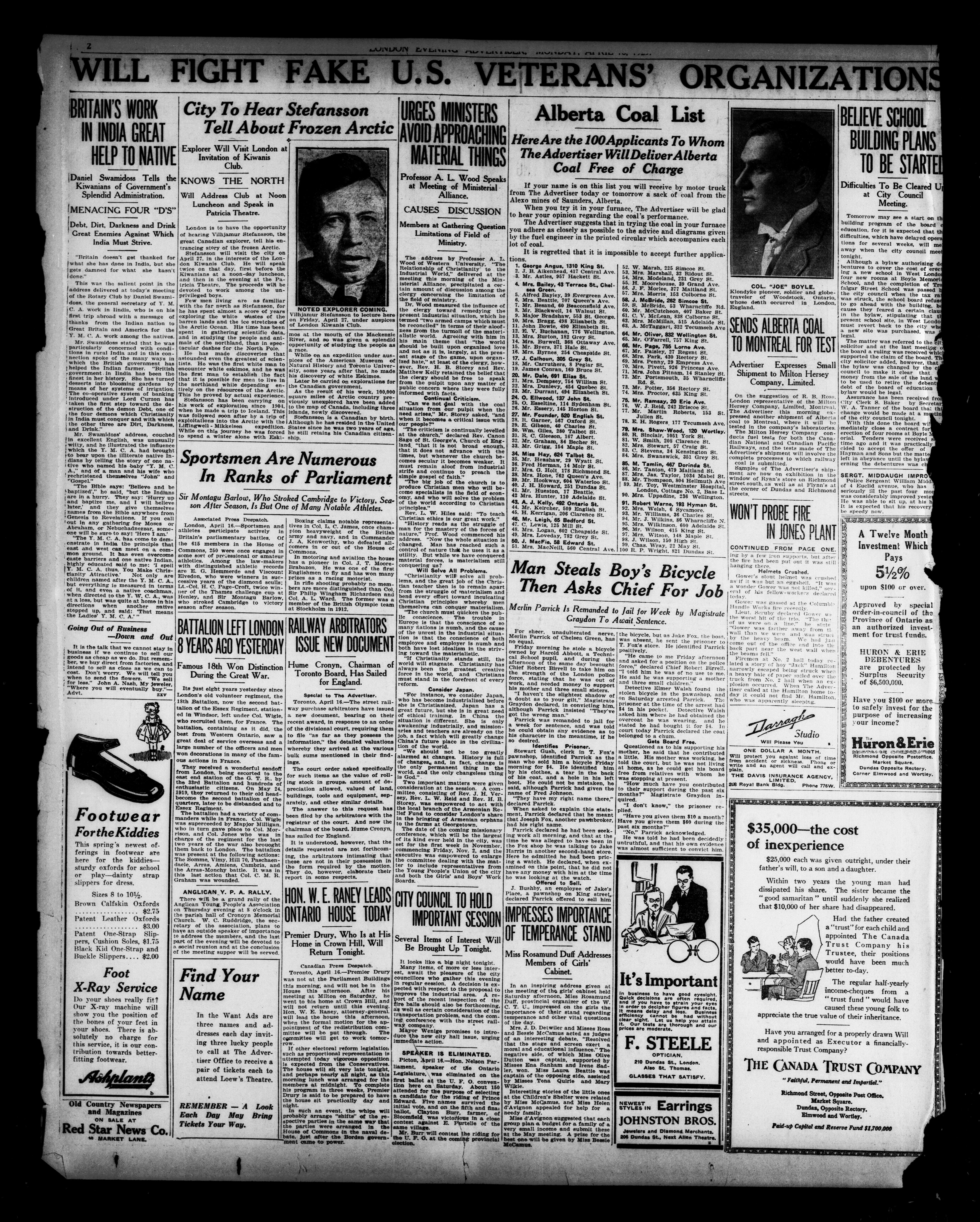 London Evening Advertiser. : London Evening Advertiser : 60th Year, No. 23624 (April 16, 1923)