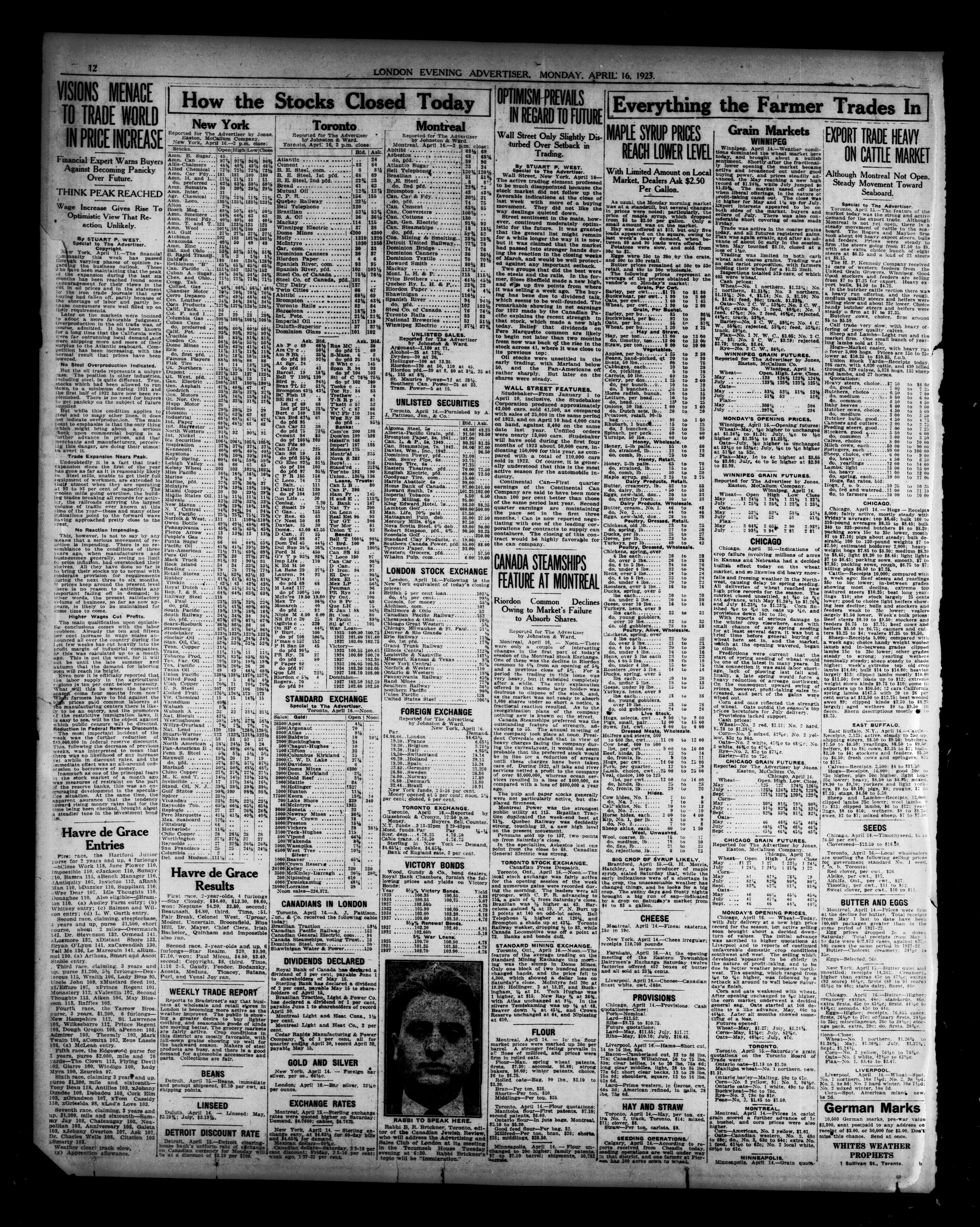 London Evening Advertiser. : London Evening Advertiser : 60th Year, No. 23624 (April 16, 1923)