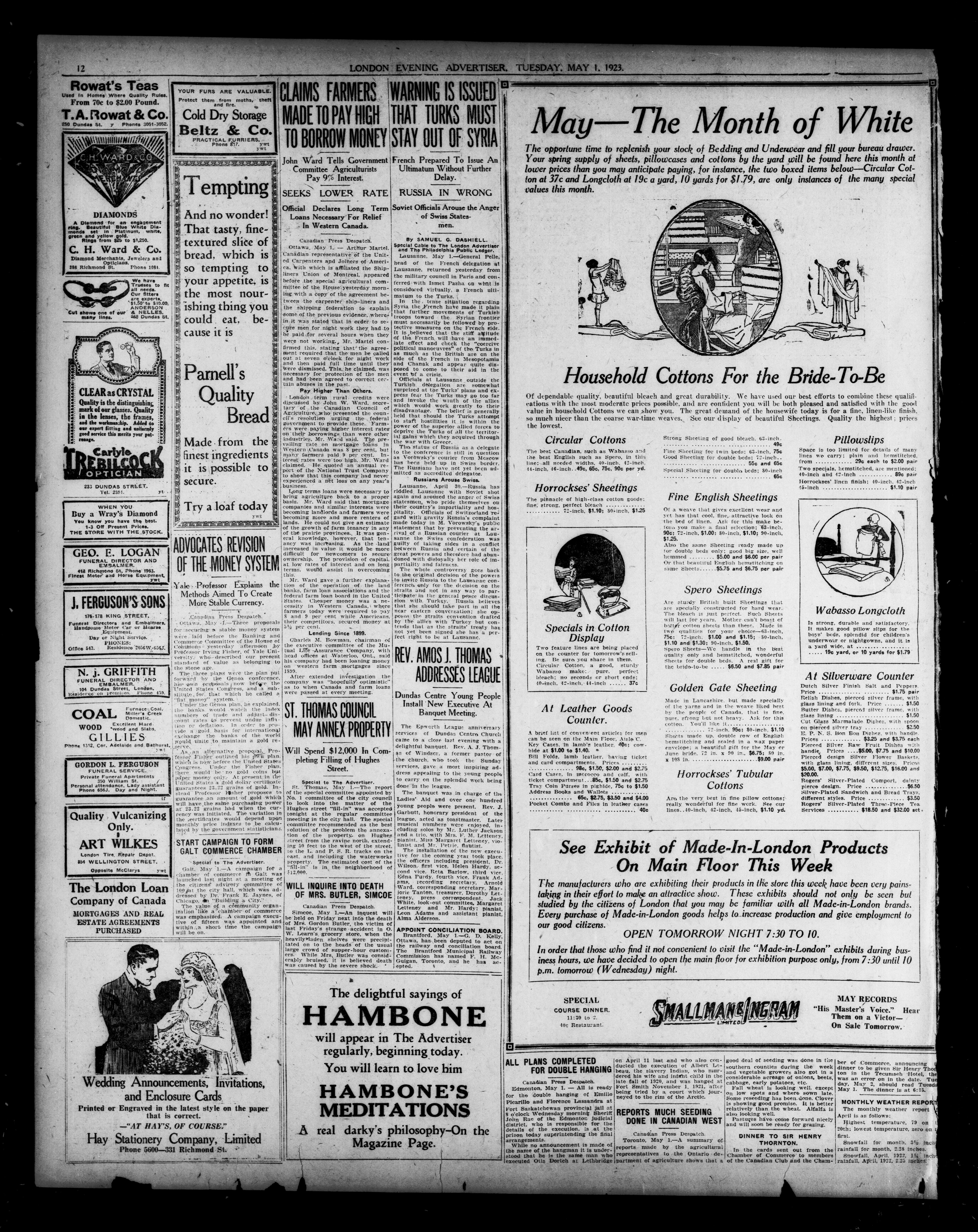London Evening Advertiser. : London Evening Advertiser : 60th Year, No. 23637 (May 1, 1923)
