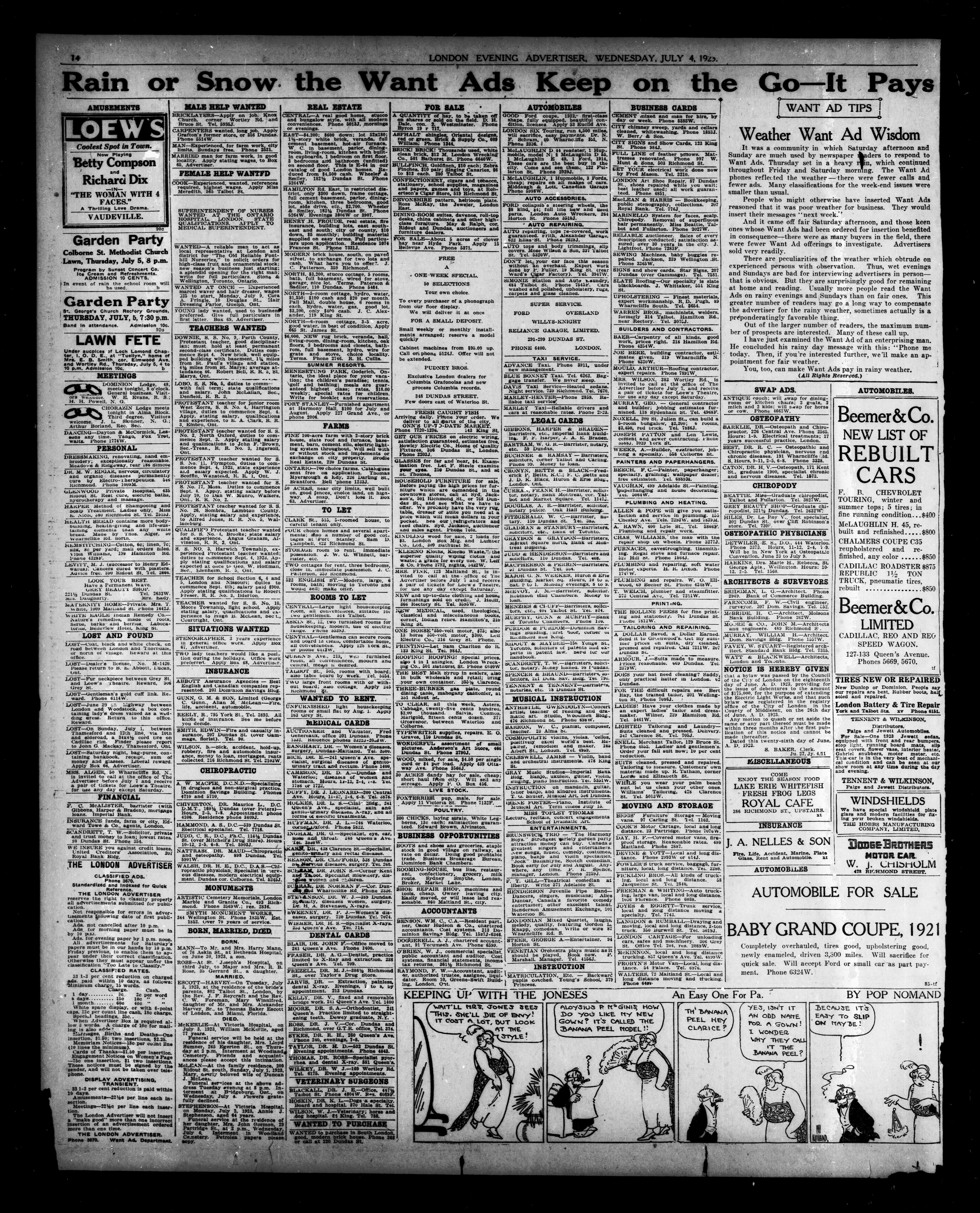 London Evening Advertiser. : Evening Advertiser : 60th Year, No. 23692 (July 4, 1923)