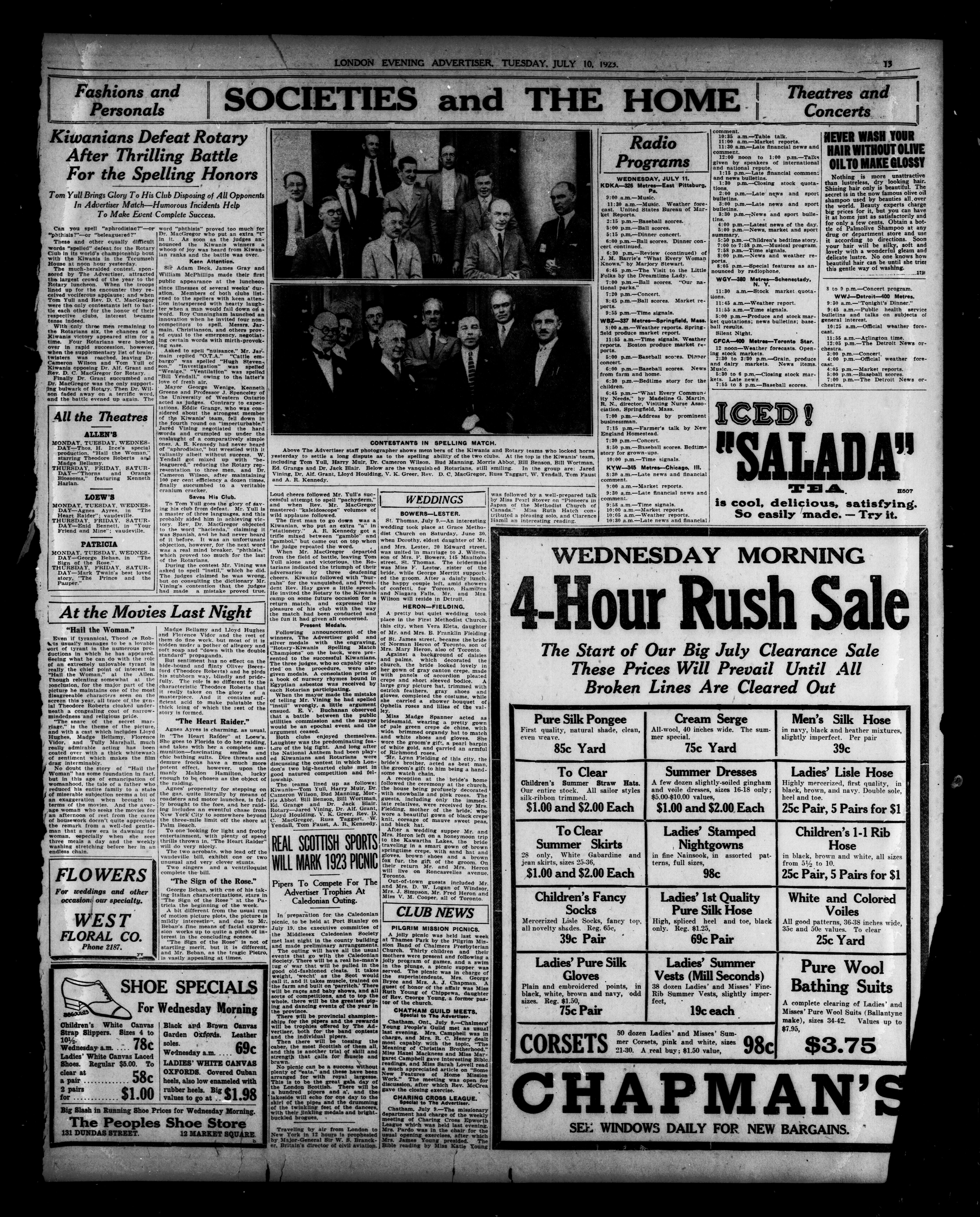 London Evening Advertiser. : Evening Advertiser : 60th Year, No. 23697 (July 10, 1923)