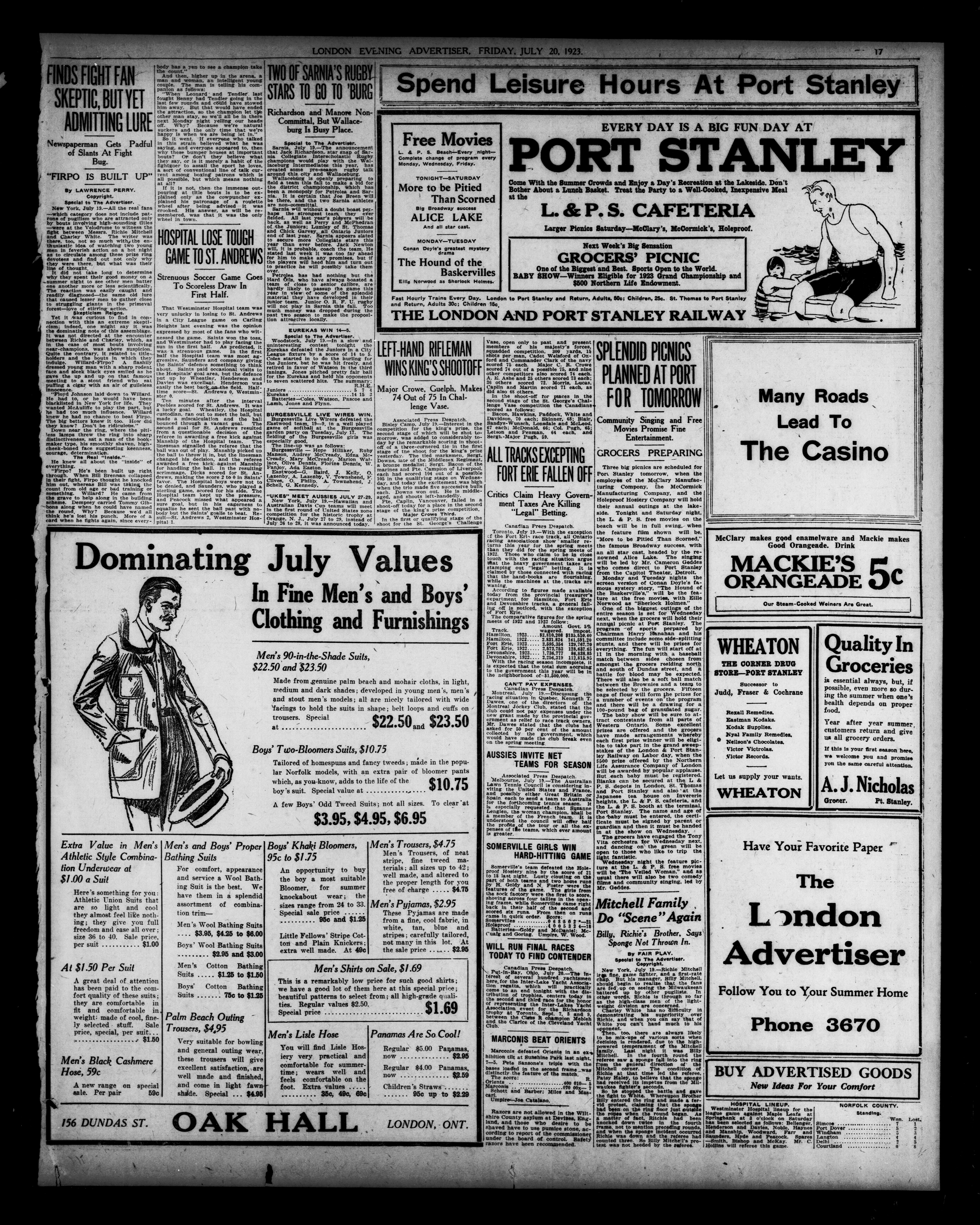 London Evening Advertiser. : Evening Advertiser : 60th Year, No. 23706 (July 20, 1923)