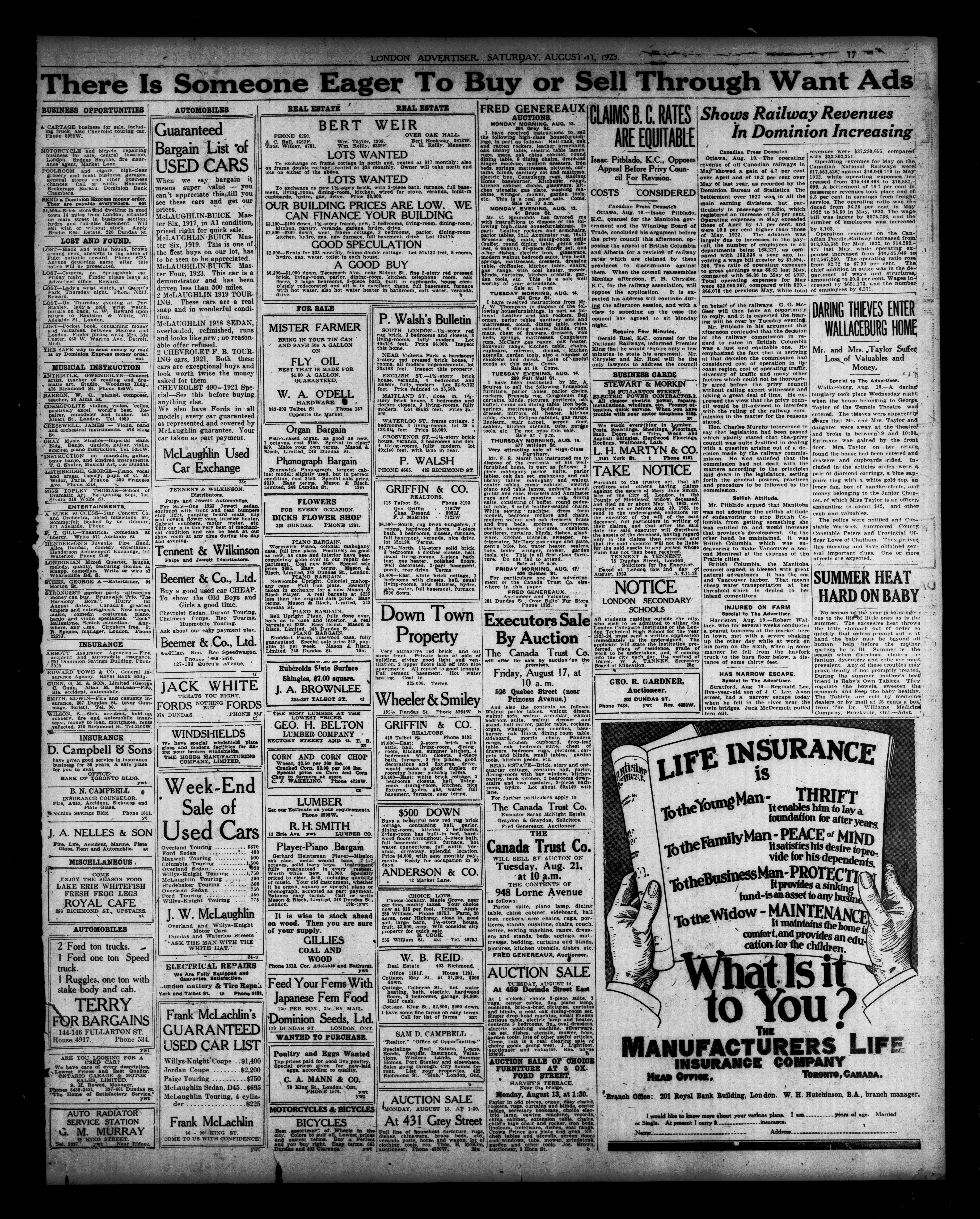 London Evening Advertiser. : Evening Advertiser : 60th Year, No. 23725 (August 11, 1923)