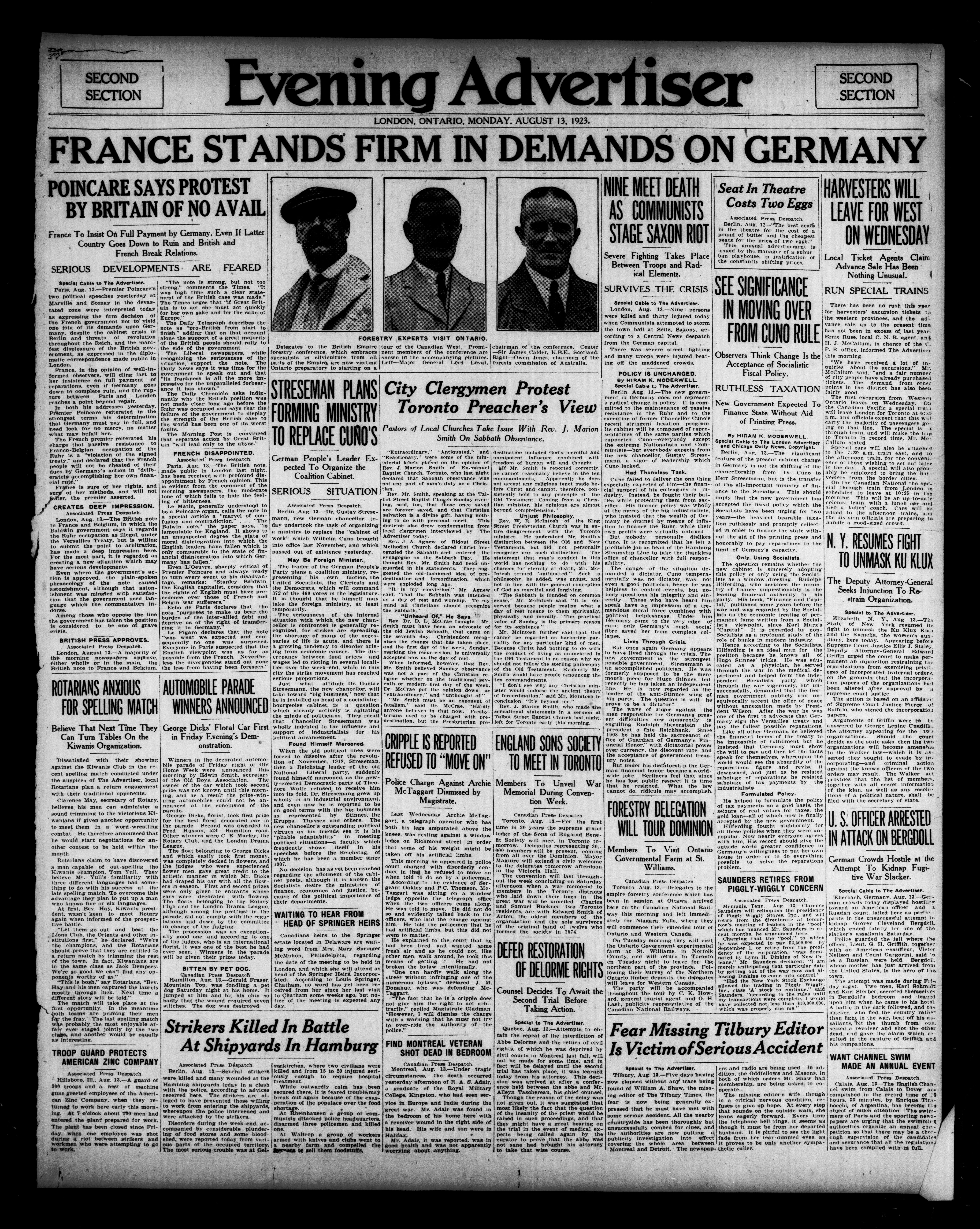 London Evening Advertiser. : Evening Advertiser : 60th Year, No. 23726 (August 13, 1923)