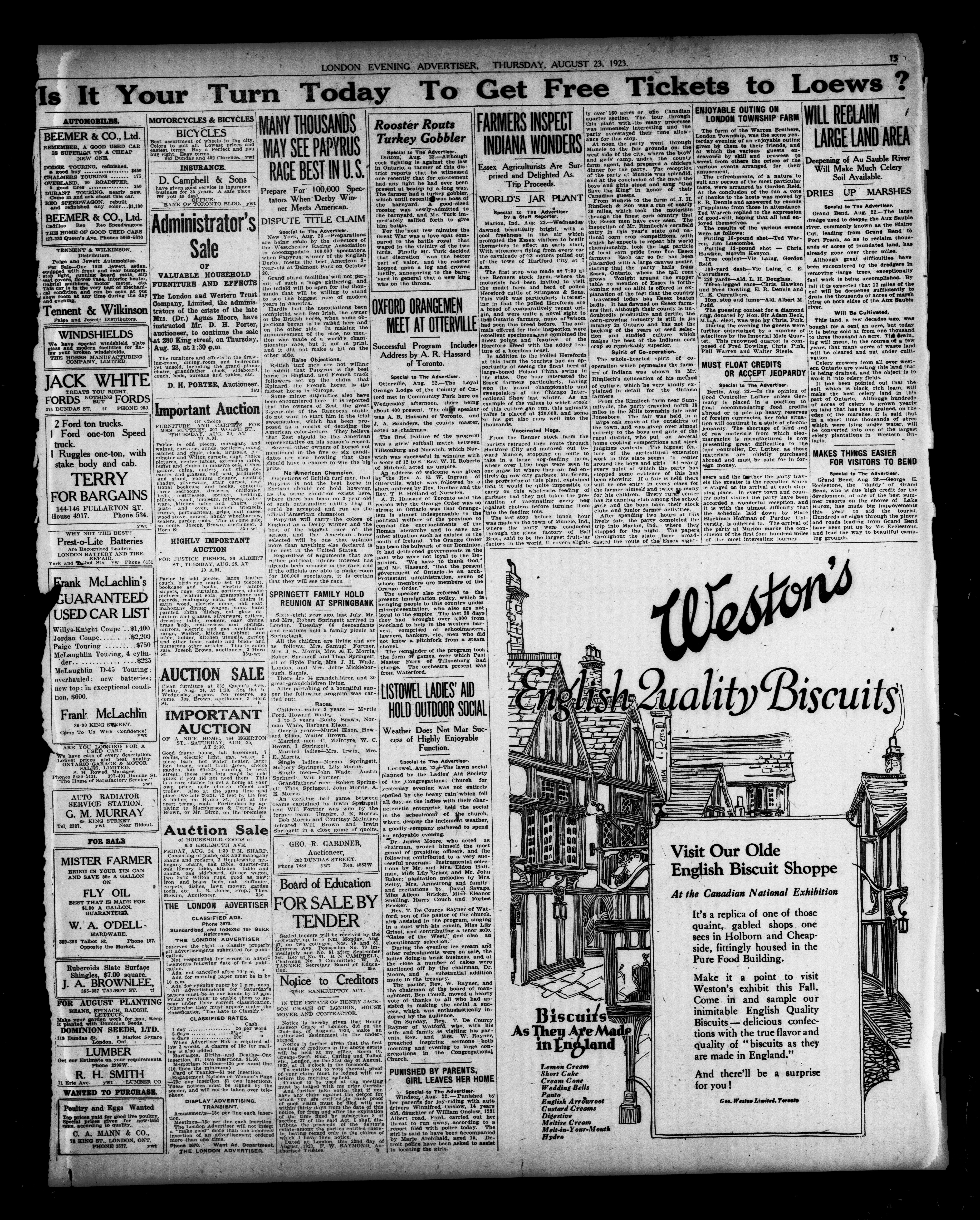 London Evening Advertiser. : Evening Advertiser : 60th Year, No. 23735 (August 23, 1923)