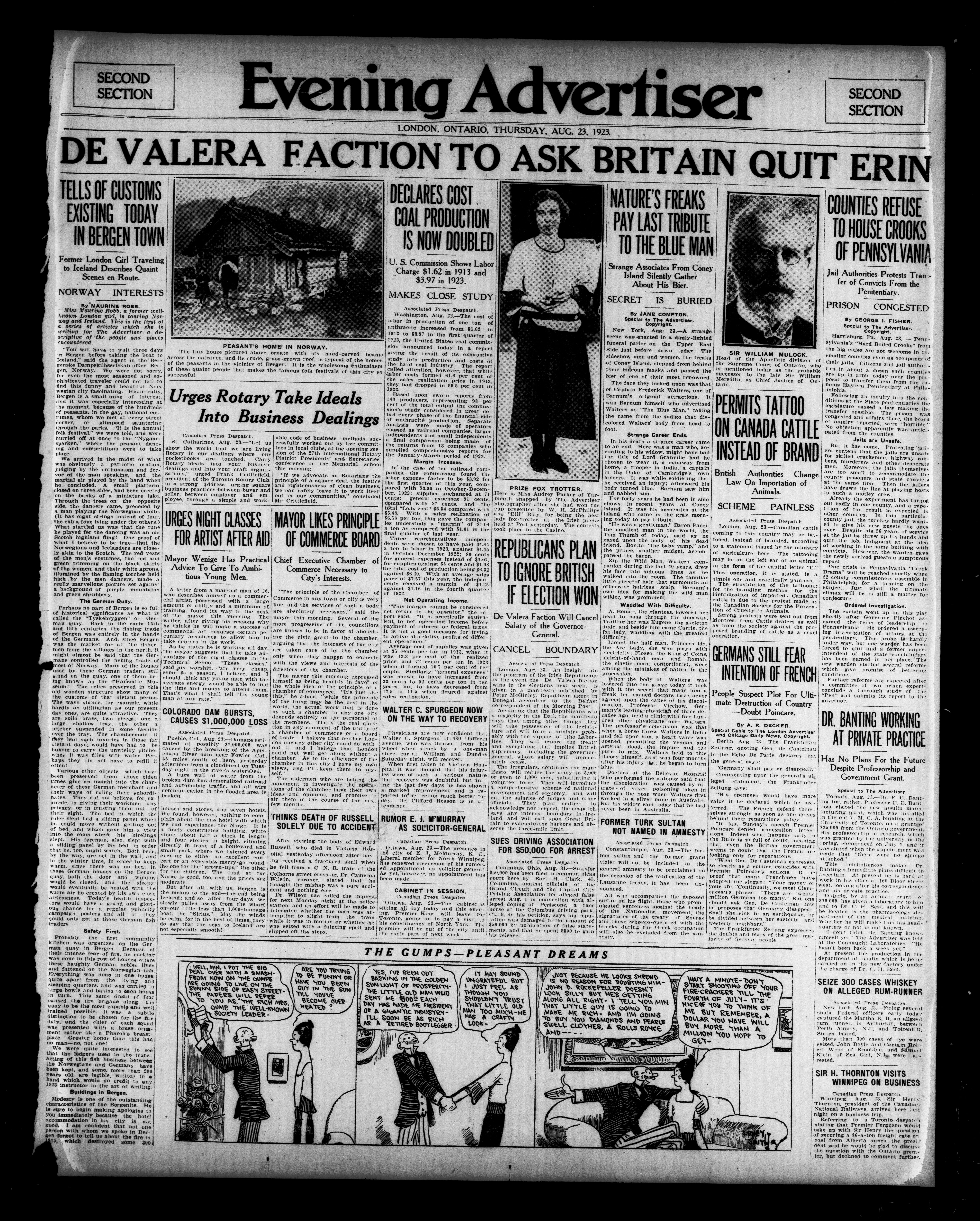 London Evening Advertiser. : Evening Advertiser : 60th Year, No. 23735 (August 23, 1923)