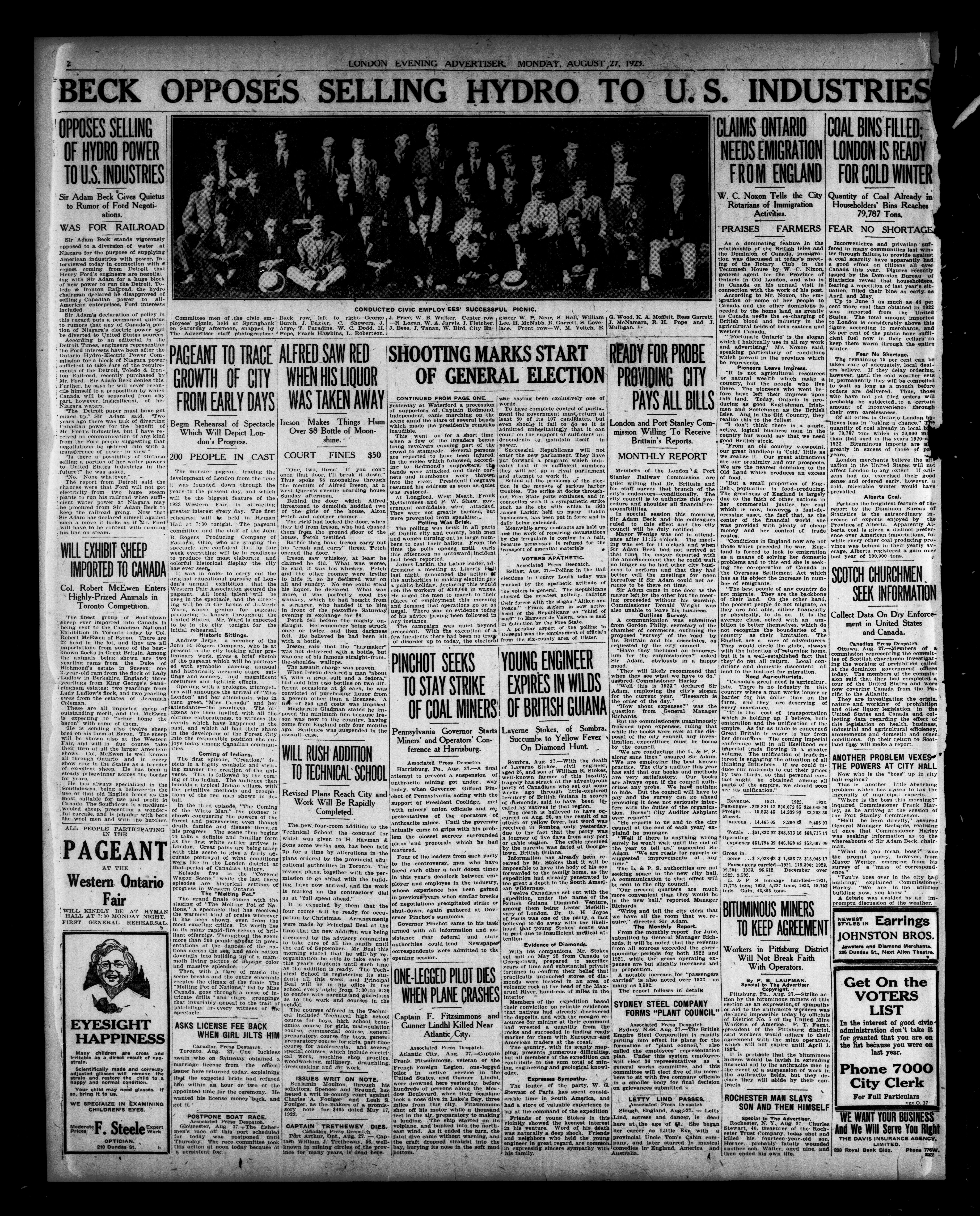 London Evening Advertiser. : Evening Advertiser : 60th Year, No. 23738 (August 27, 1923)