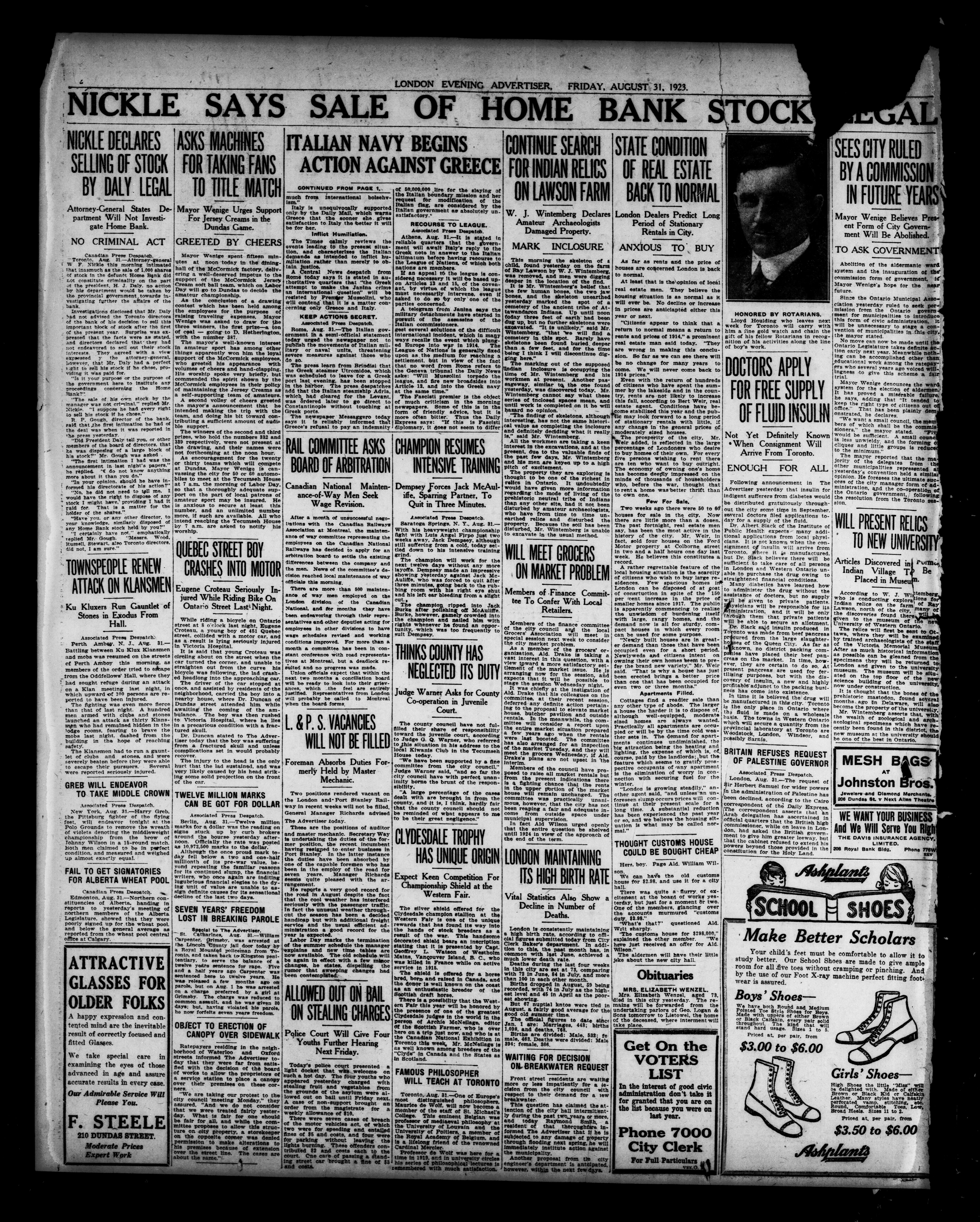 London Evening Advertiser. : Evening Advertiser : 60th Year, No. 23742 (August 31, 1923)