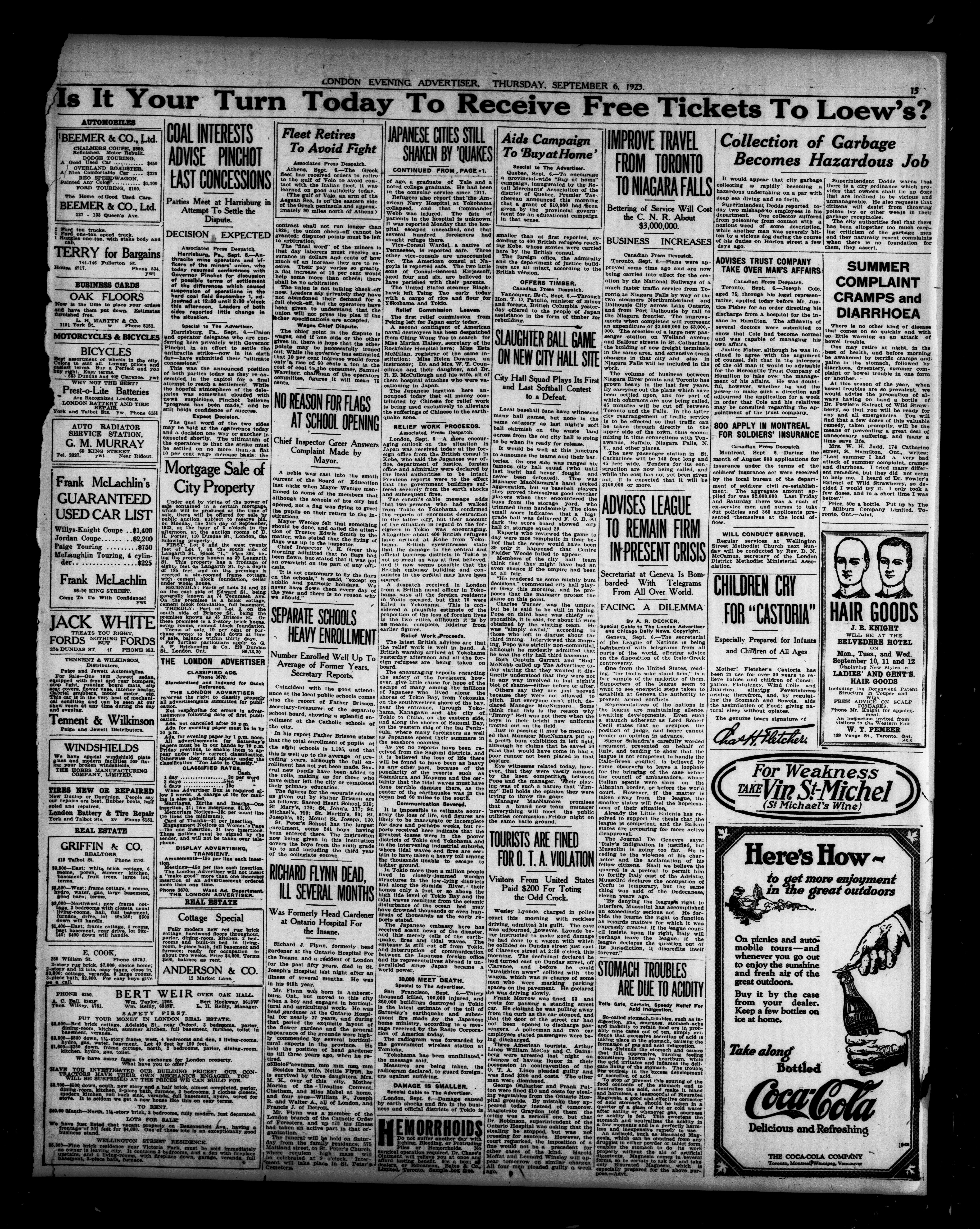 London Evening Advertiser. : Evening Advertiser : 60th Year, No. 23747 (September 6, 1923)