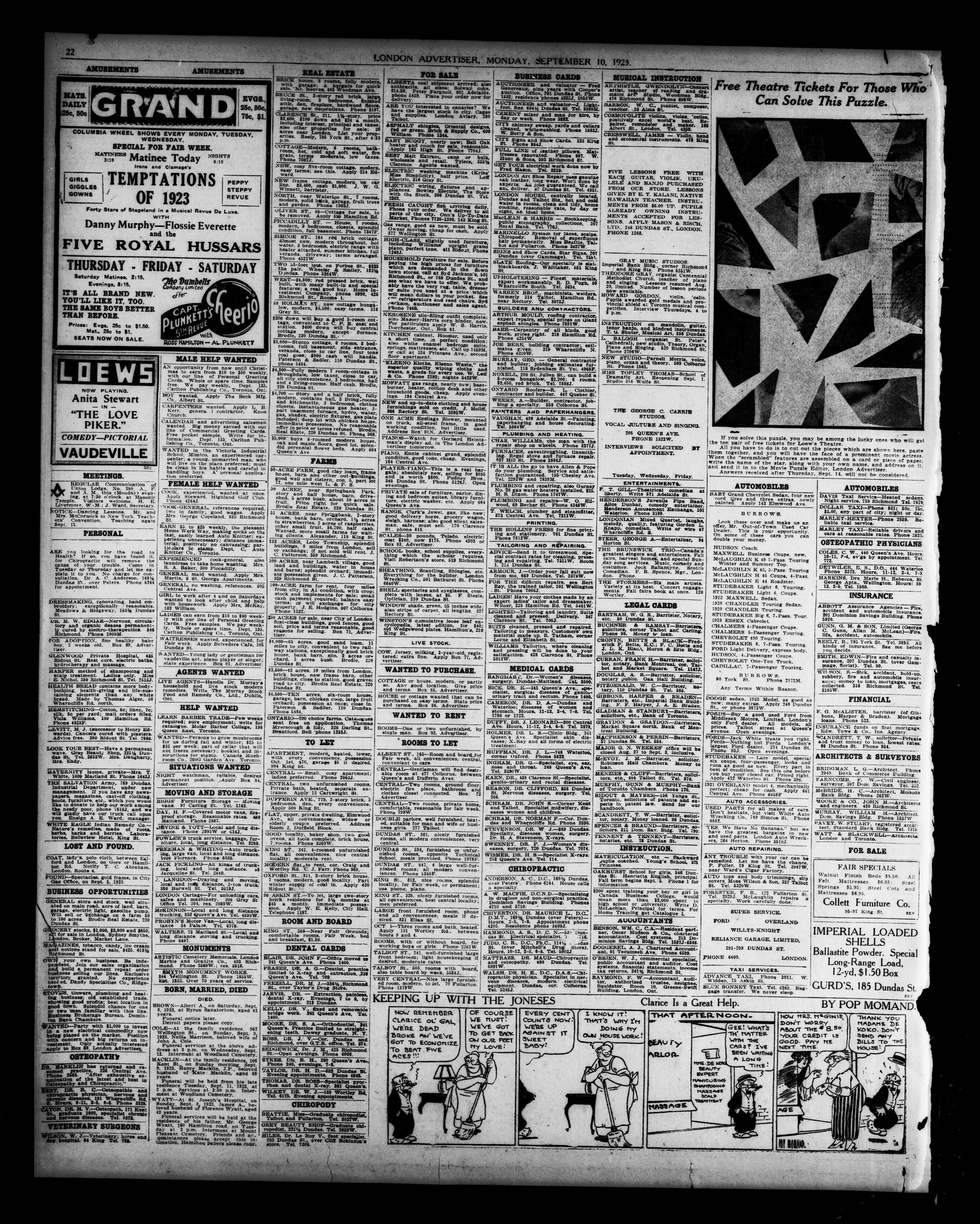 London Evening Advertiser. : Evening Advertiser : 60th Year, No. 23750 (September 10, 1923)