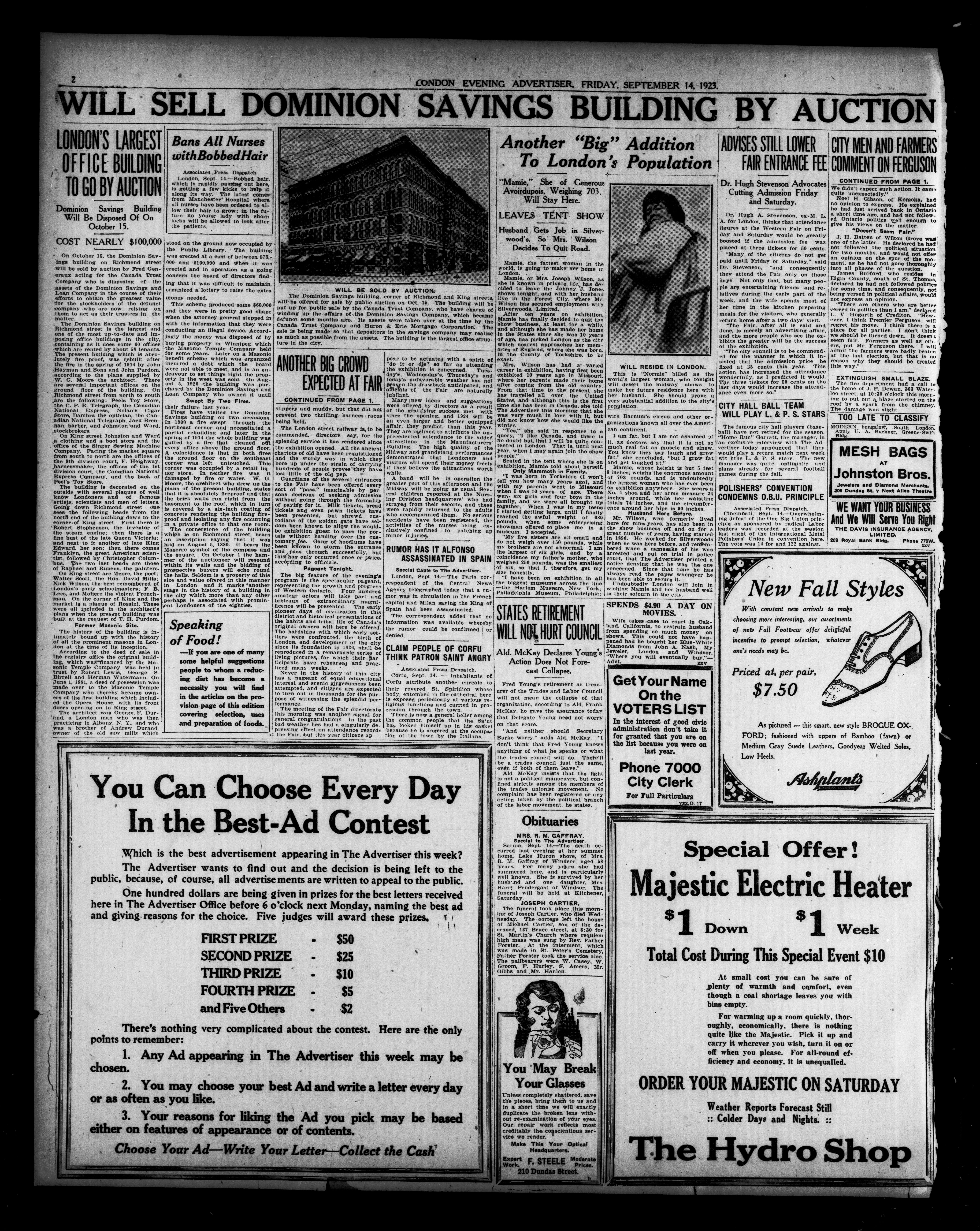 London Evening Advertiser. : Evening Advertiser : 60th Year, No. 23754 (September 14, 1923)