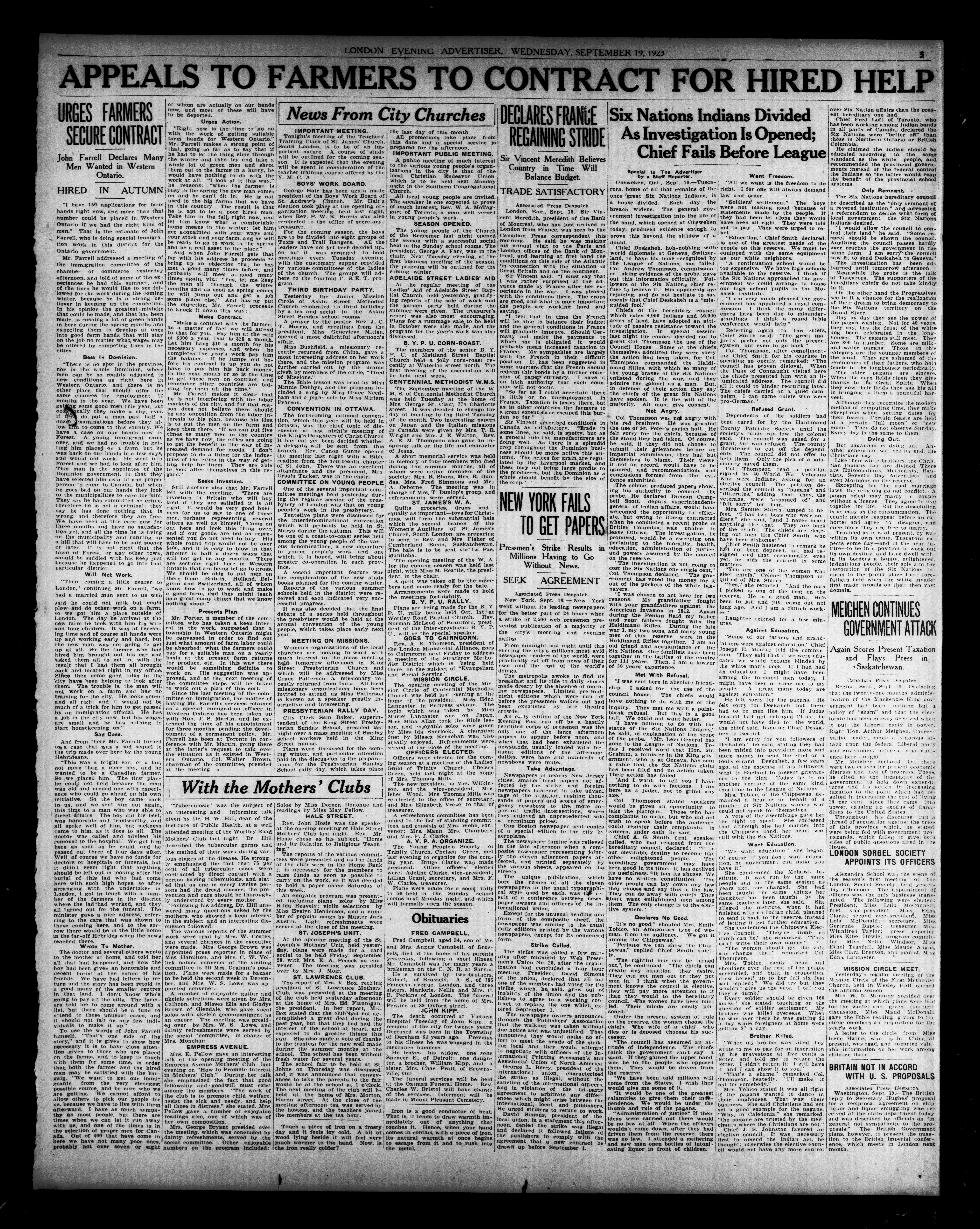 London Evening Advertiser. : Evening Advertiser : 60th Year, No. 23758 (September 19, 1923)