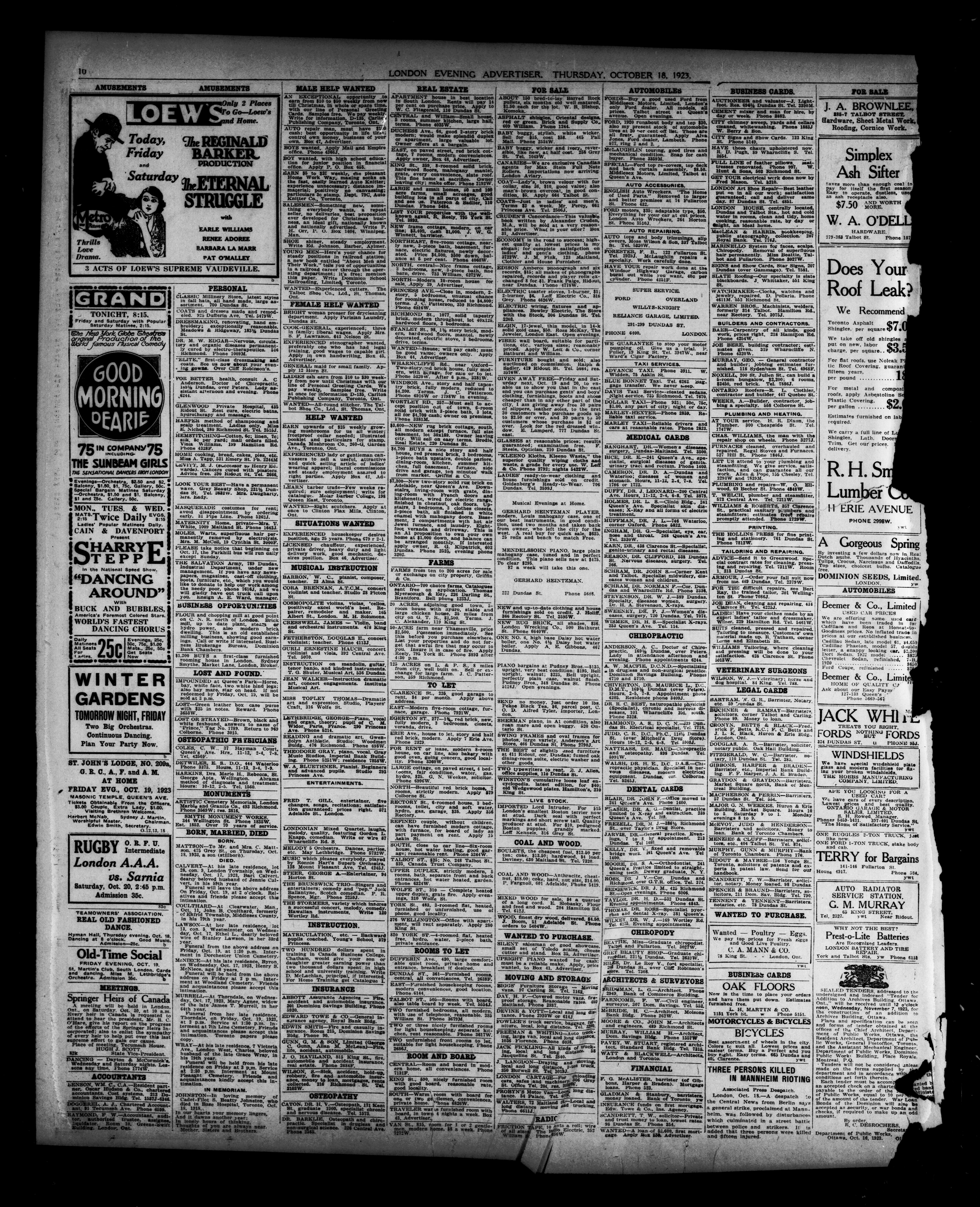 London Evening Advertiser. : London Evening Advertiser : 60th Year, No. 23783 (October 18, 1923)
