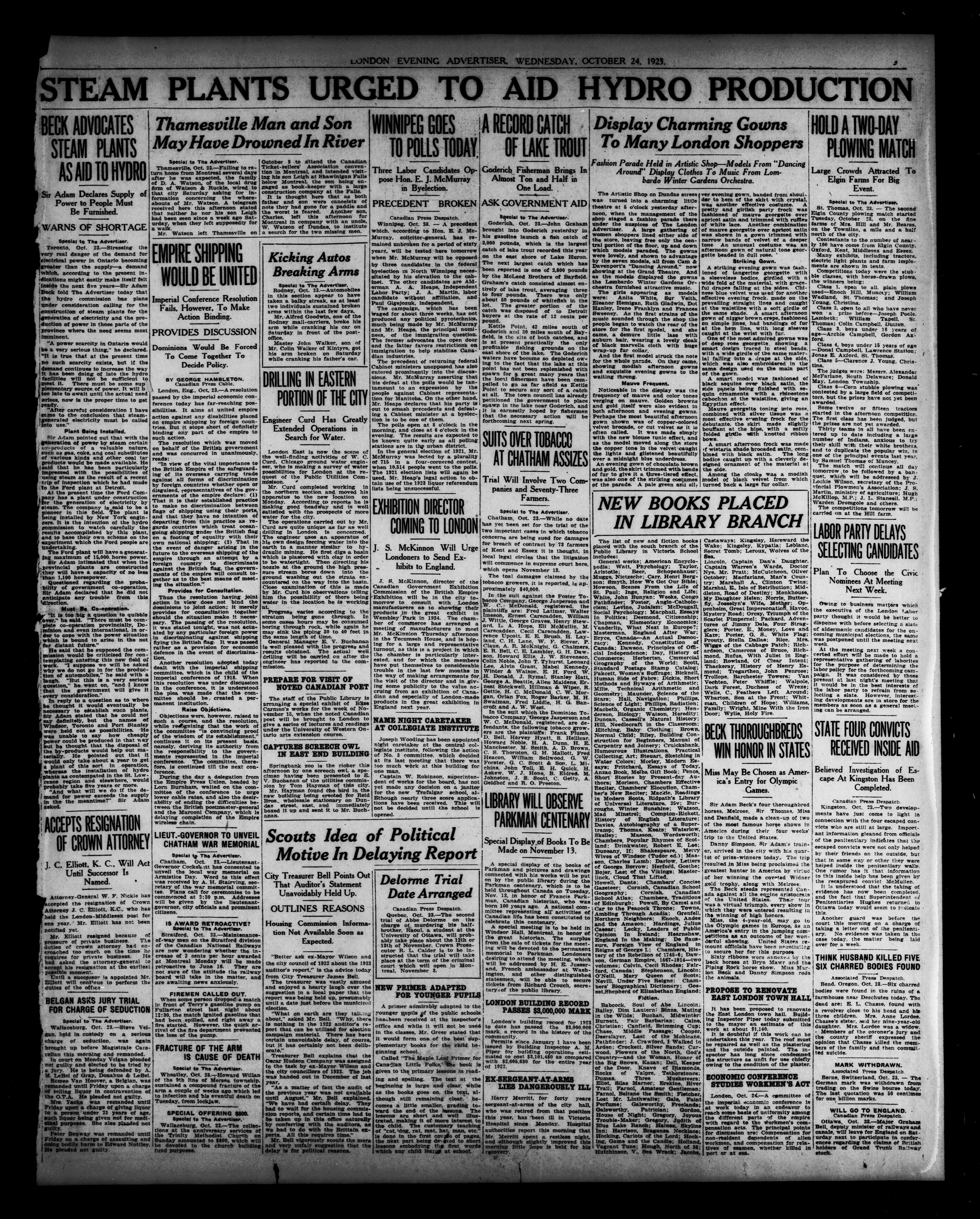 London Evening Advertiser. : London Evening Advertiser : 60th Year, No. 23788 (October 24, 1923)