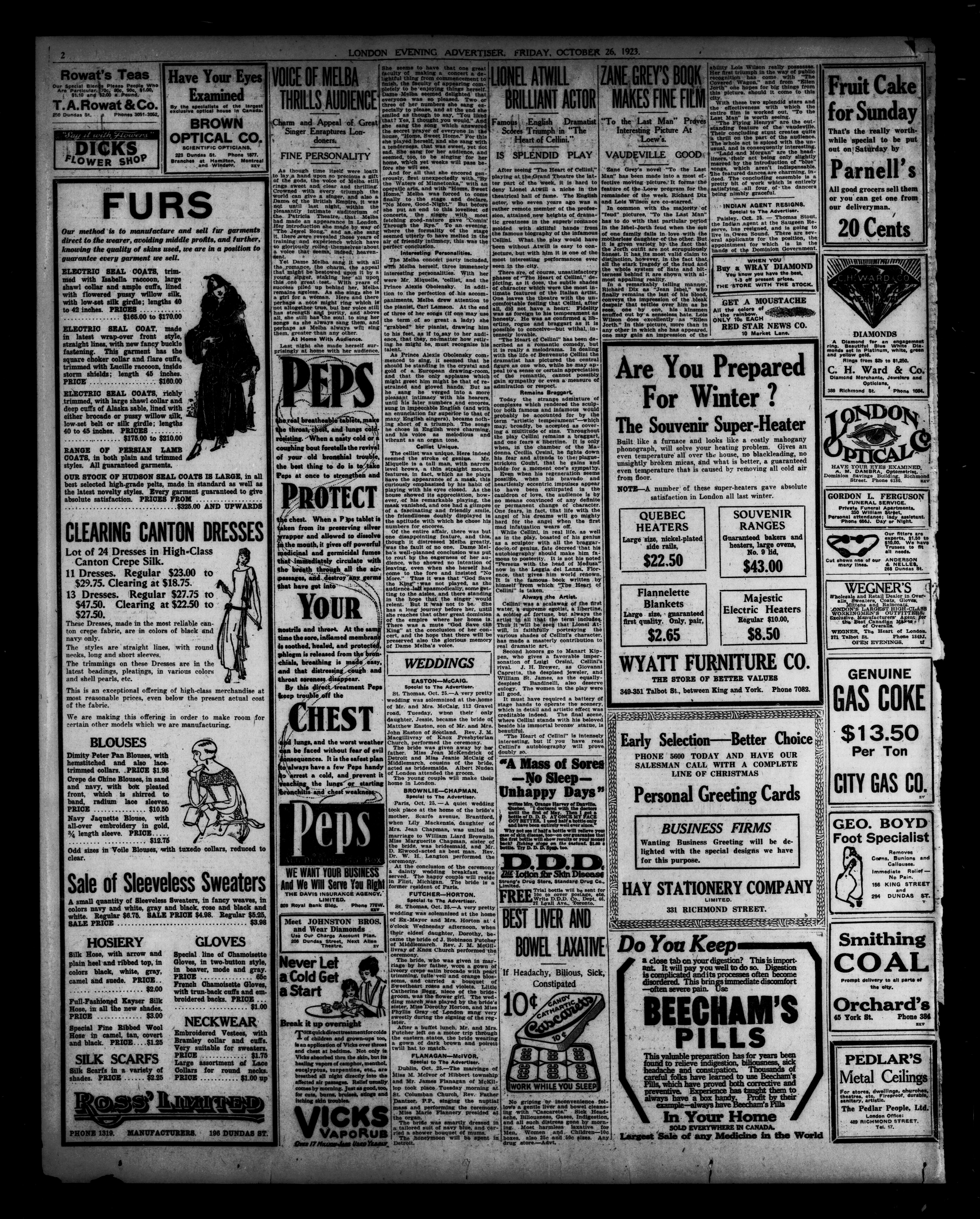 London Evening Advertiser. : London Evening Advertiser : 60th Year, No. 23790 (October 26, 1923)