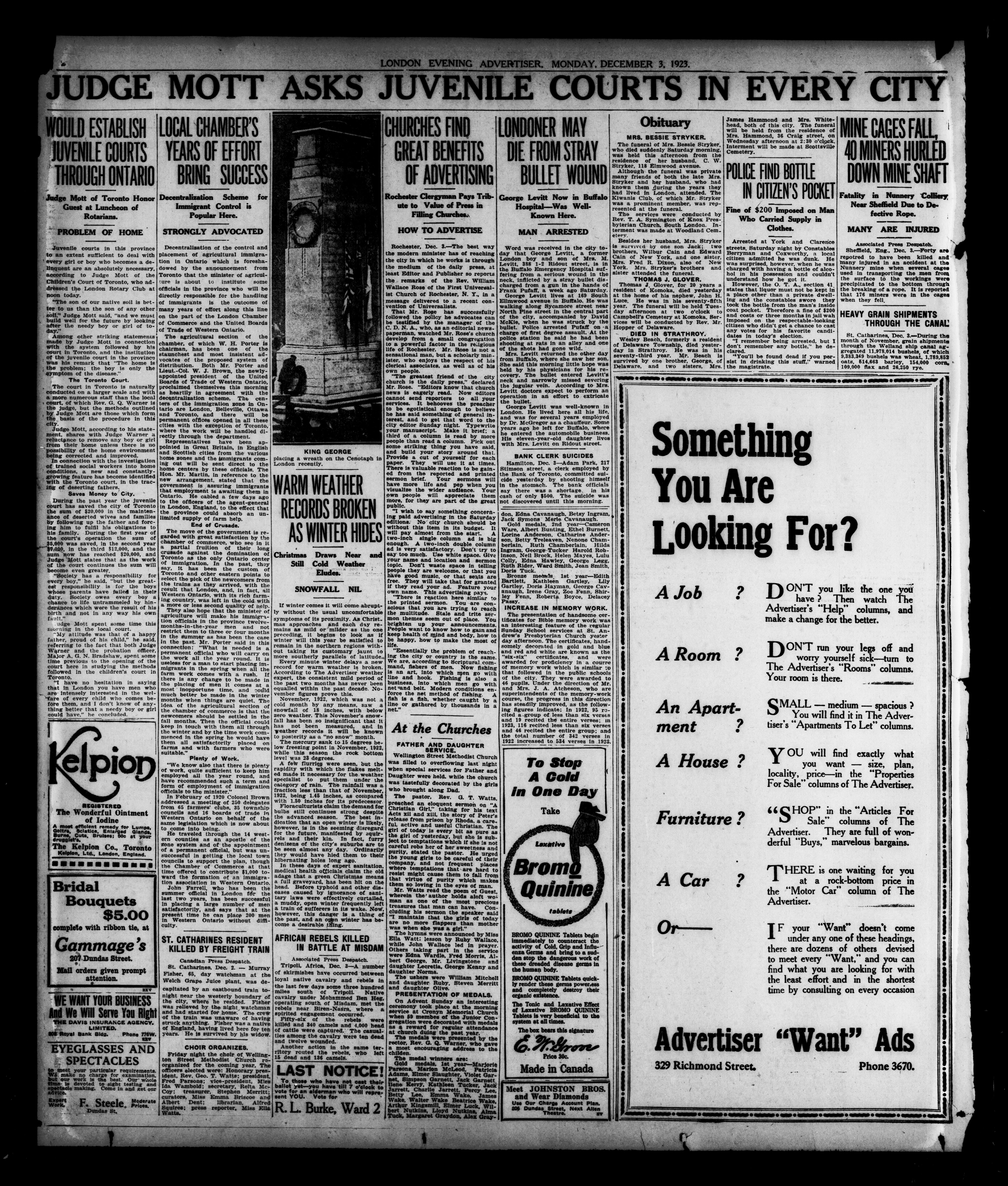 London Evening Advertiser. : London Evening Advertiser : 61st Year, No. 23822 (December 3, 1923)