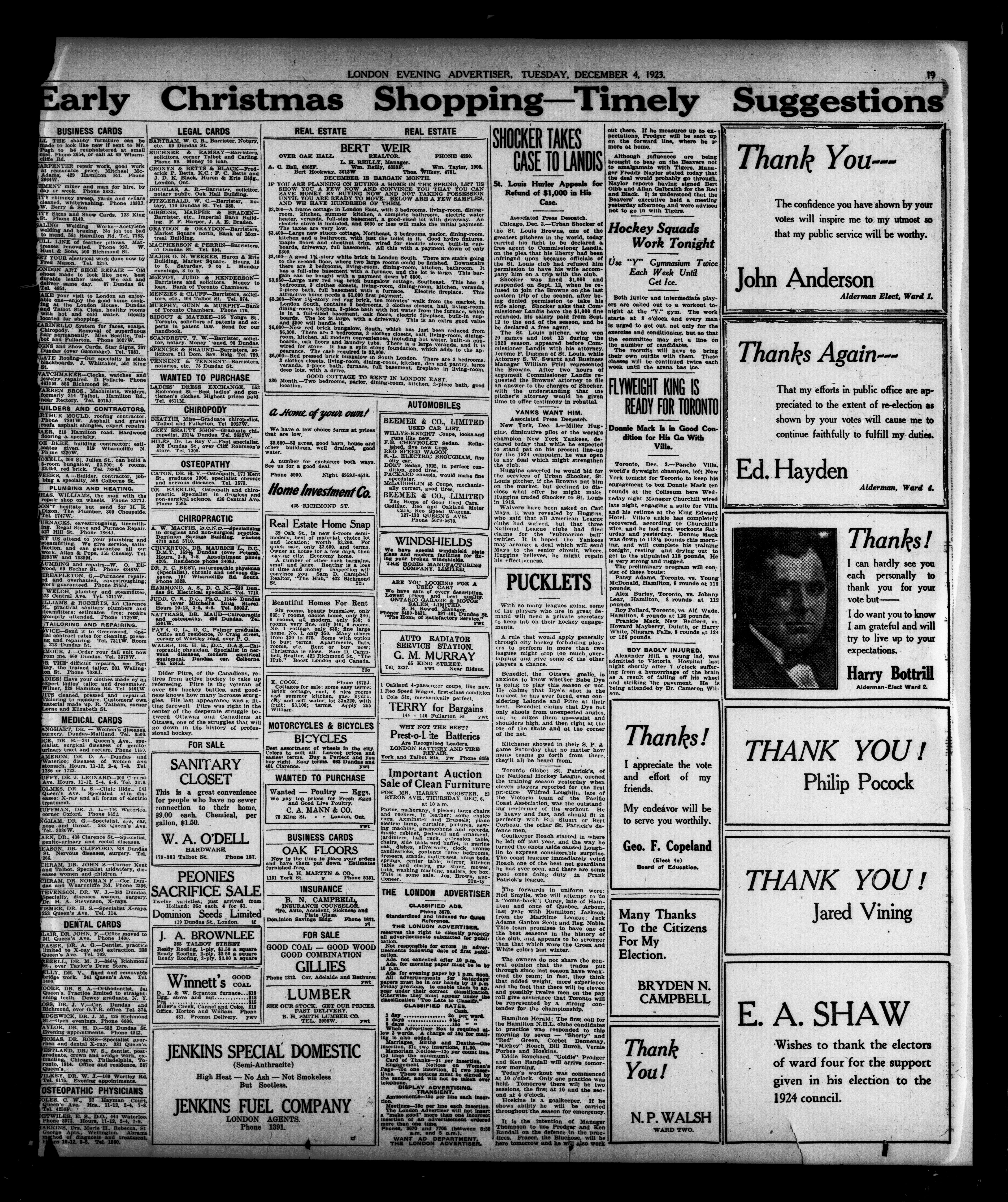 London Evening Advertiser. : London Evening Advertiser : 61st Year, No. 23823 (December 4, 1923)