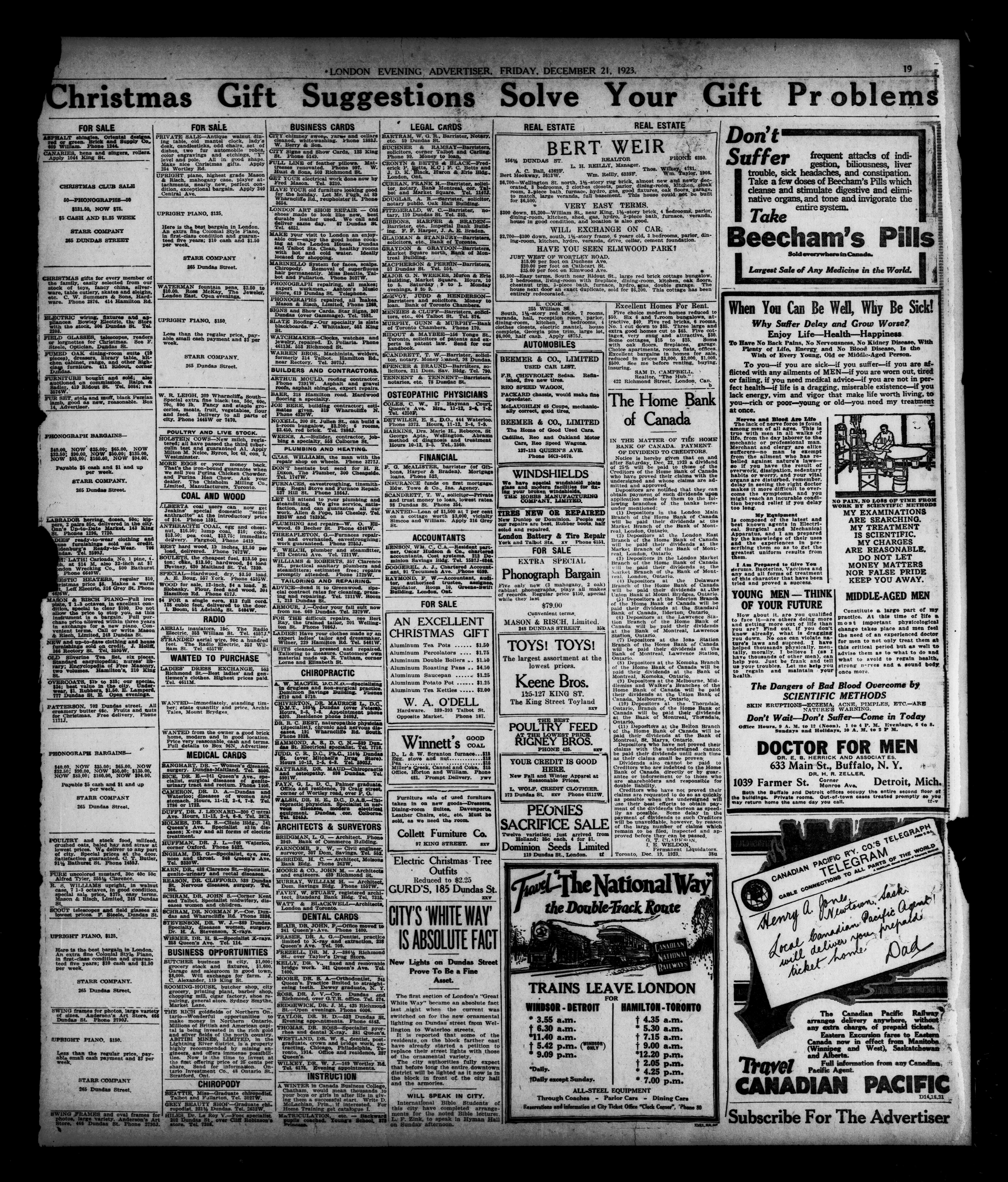 - London Evening Advertiser : 61st Year, No. 23838 (December 21, 1923)