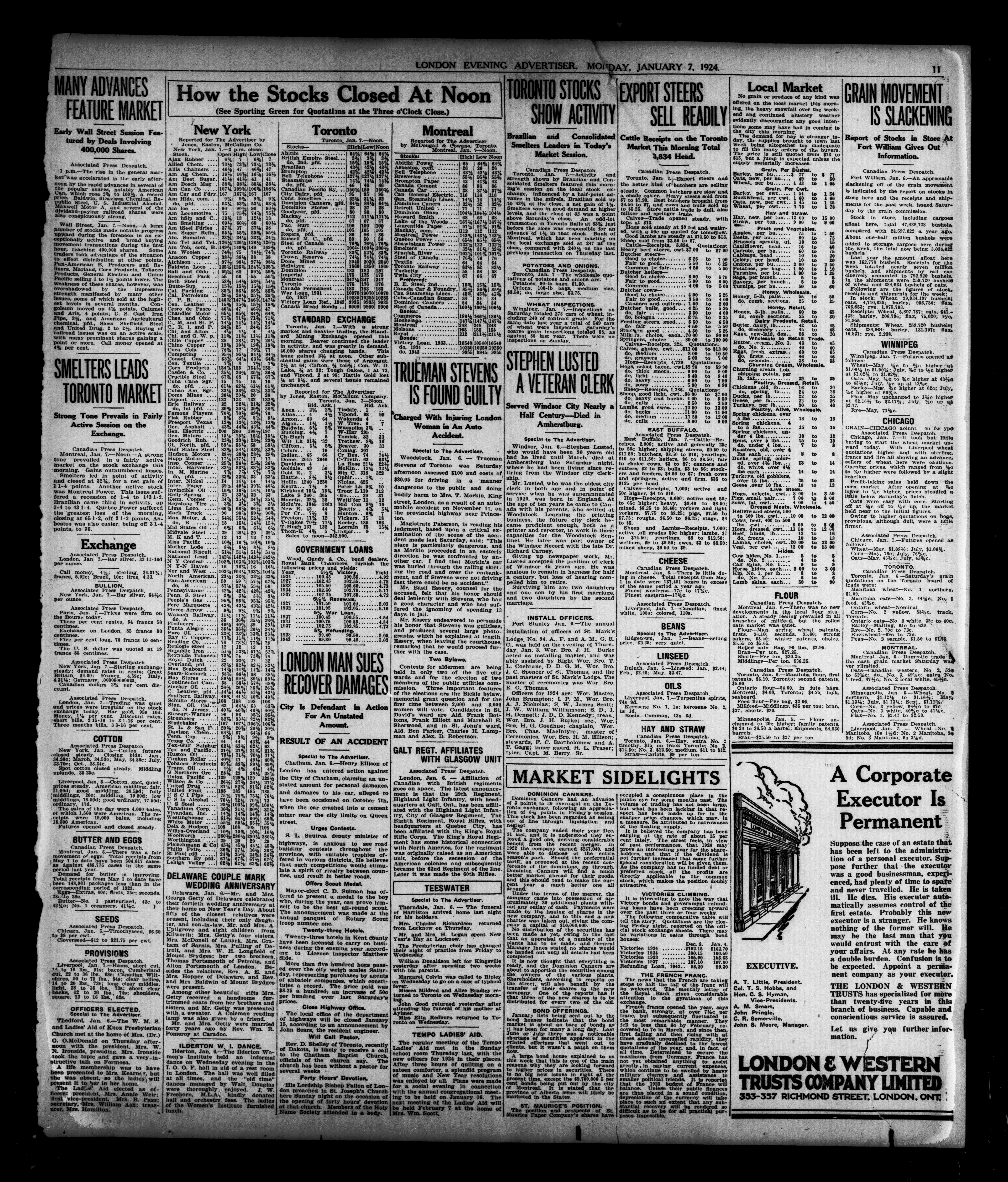 - London Evening Advertiser : 61st Year, No. 23852 (January 7, 1924)