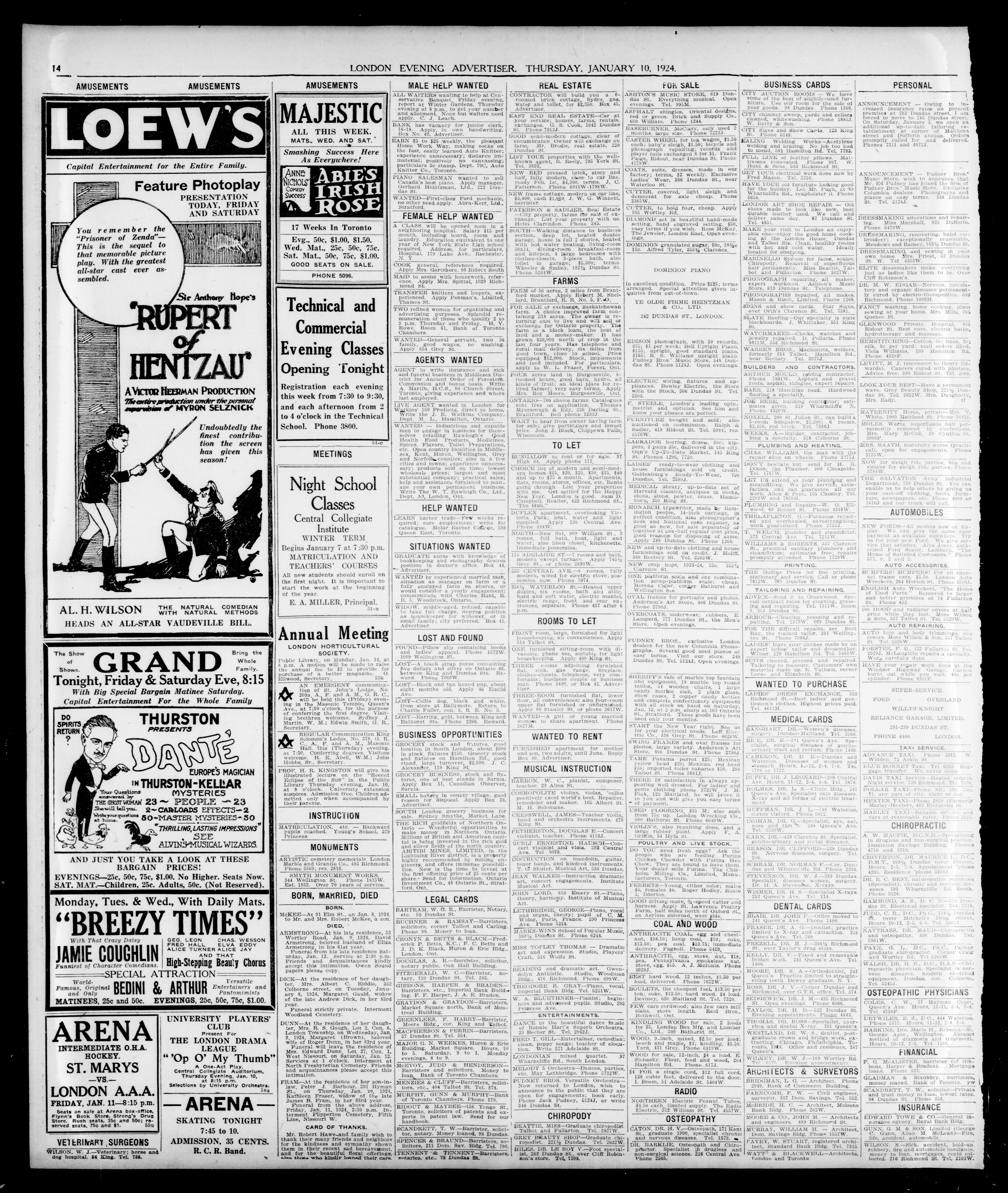 London Evening Advertiser. : London evening advertiser : 61st Year, No. 23855 (January 10, 1924)