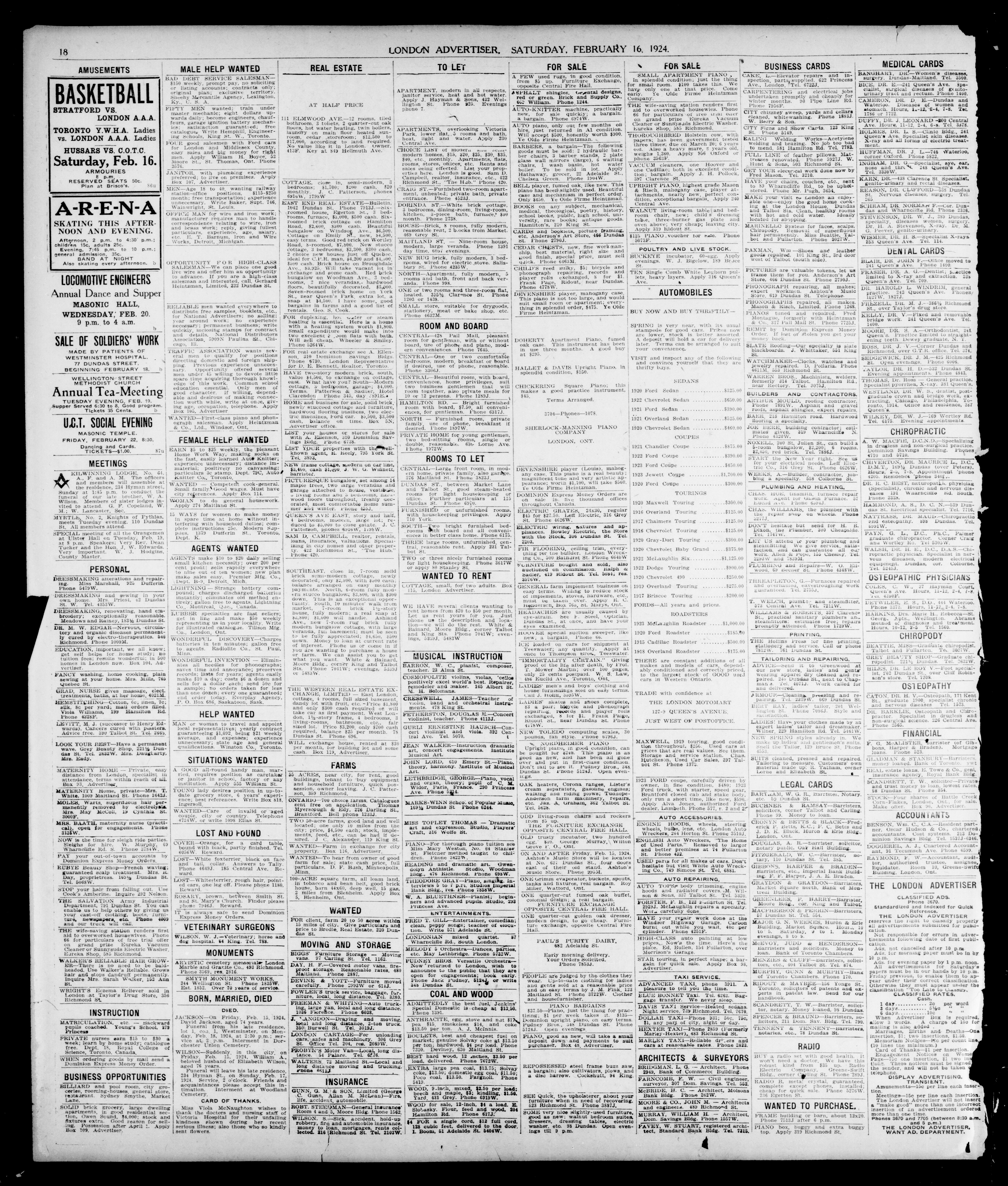 London Evening Advertiser. : London evening advertiser : 61st Year, No. 23887 (February 16, 1924)
