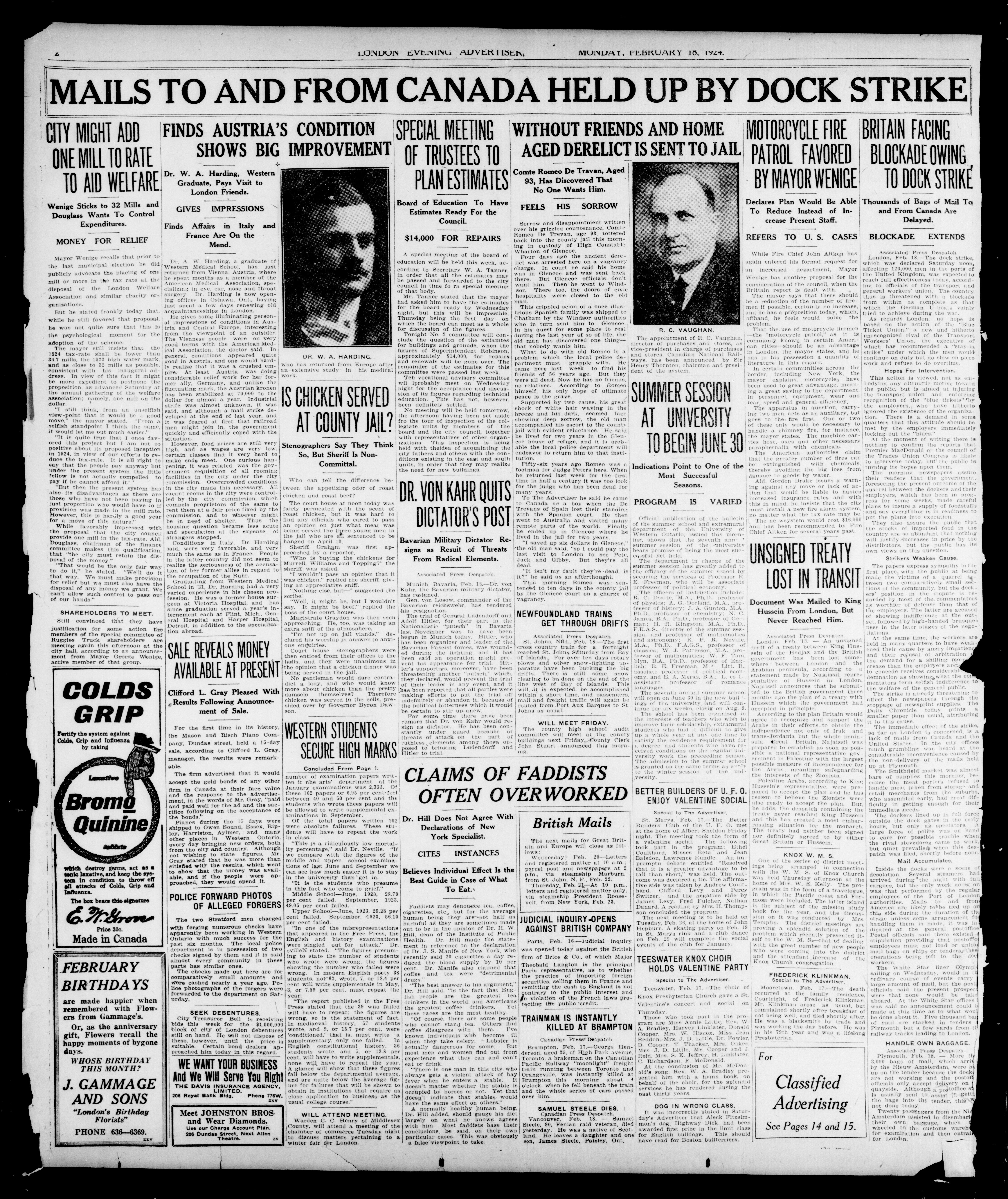London evening advertiser : 61st Year, No. 23888 (February 18, 1924)