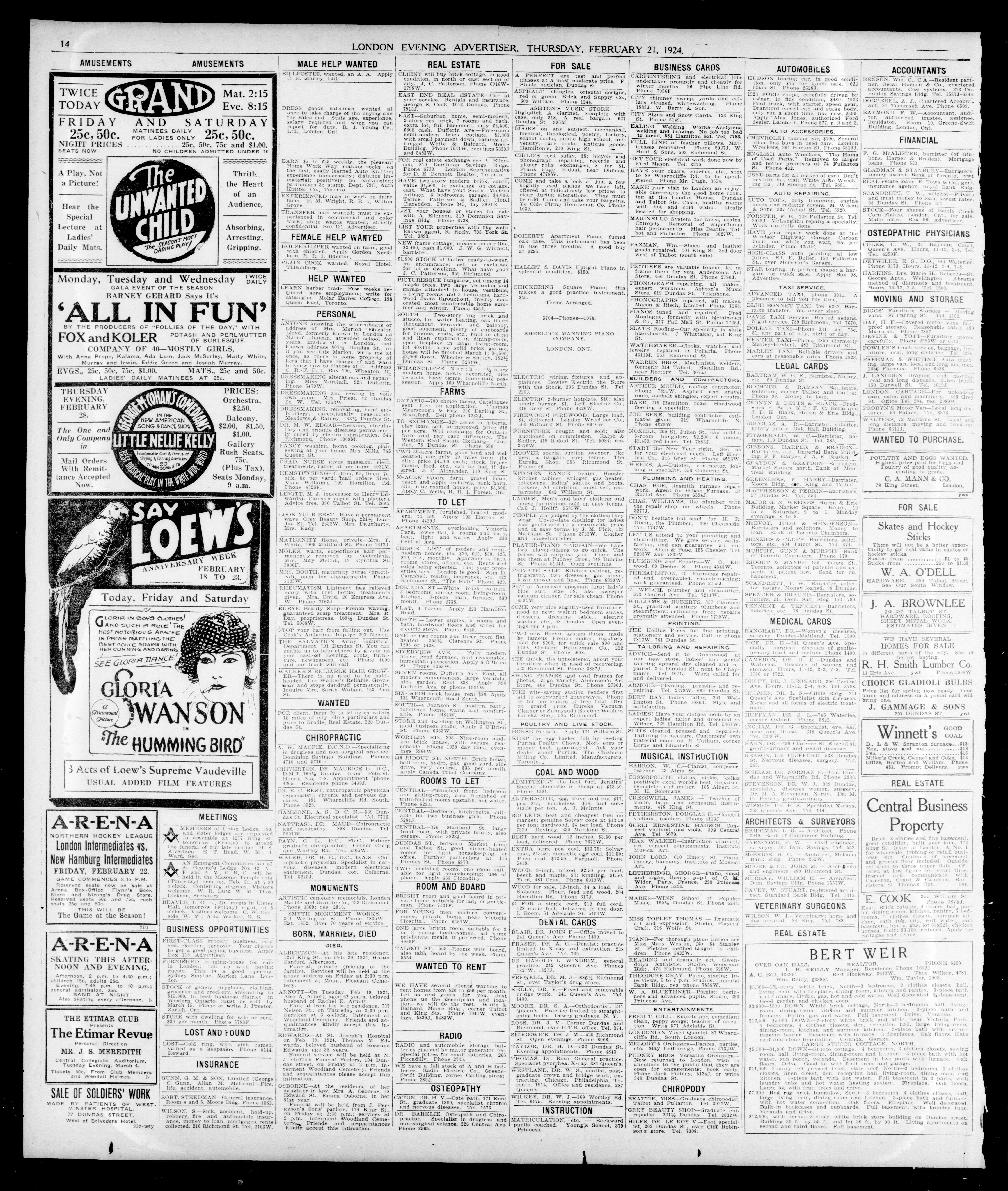 London Evening Advertiser. : London evening advertiser : 61st Year, No. 23891 (February 21, 1924)