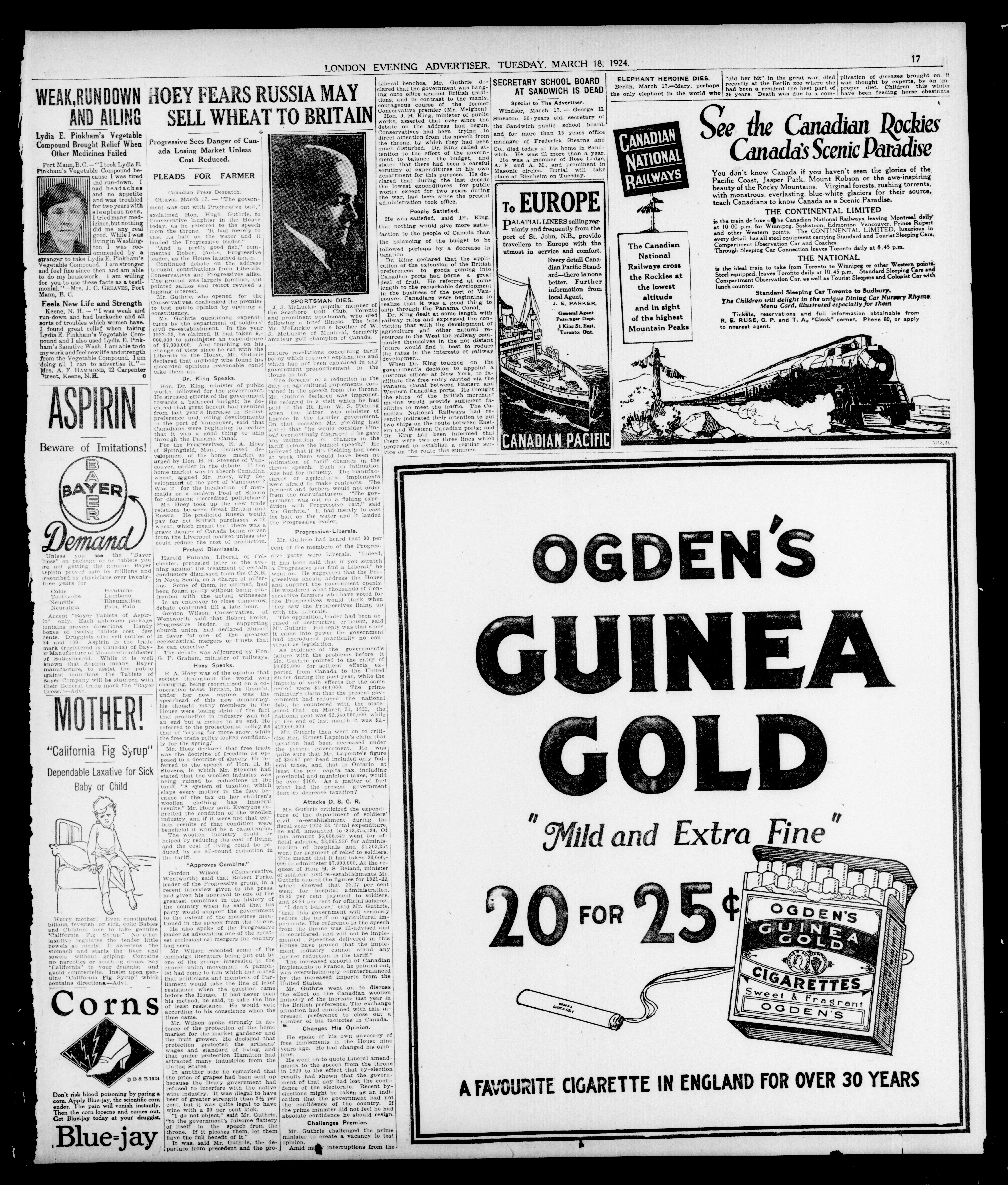 - London evening advertiser : 61st Year, No. 23913 (March 18, 1924)