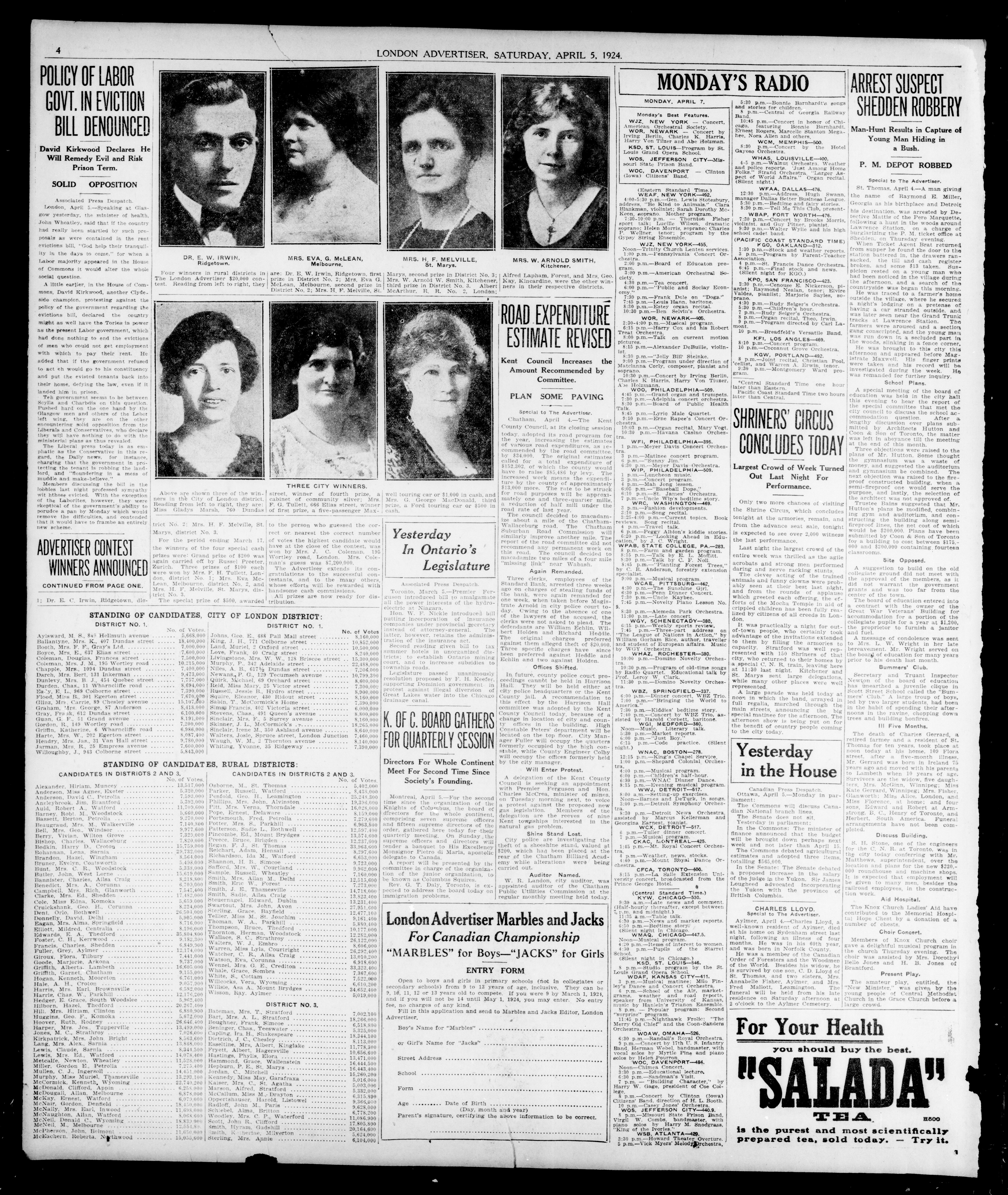 London Evening Advertiser. : London evening advertiser : 61st Year, No. 23929 (April 5, 1924)