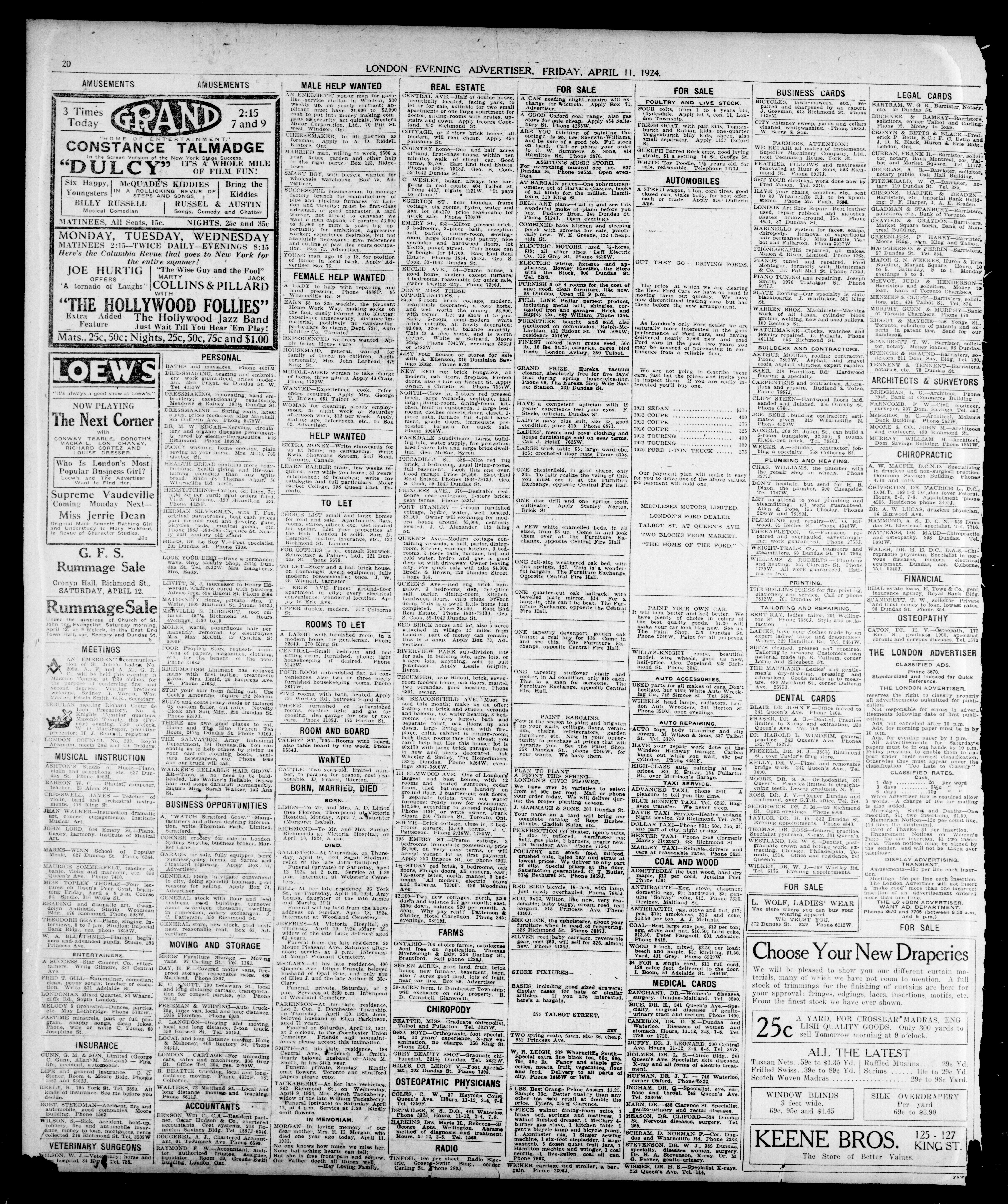 London Evening Advertiser. : London evening advertiser : 61st Year, No. 23934 (April 11, 1924)