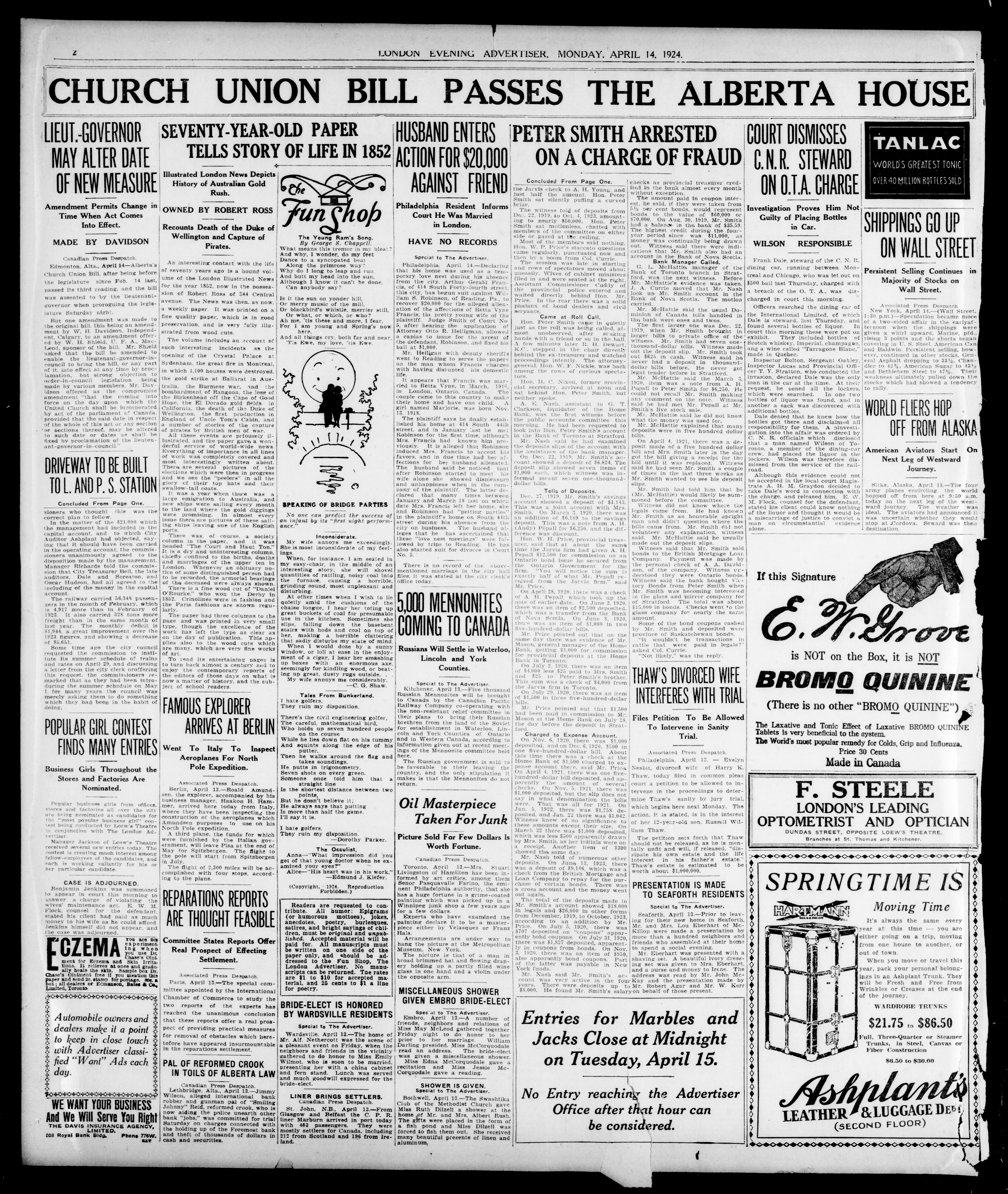 London Evening Advertiser. : London evening advertiser : 61st Year, No. 23936 (April 14, 1924)