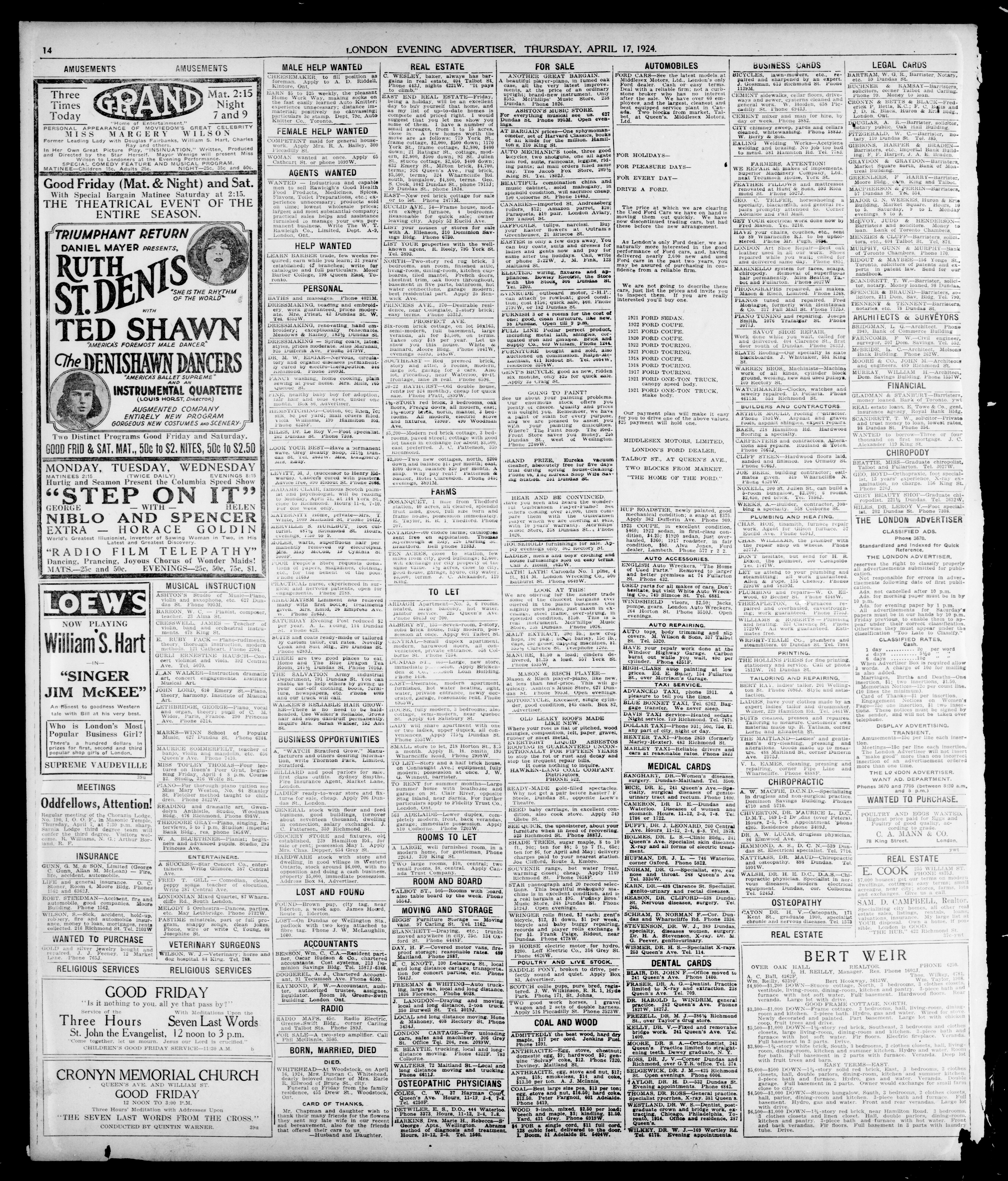 London Evening Advertiser. : London evening advertiser : 61st Year, No. 23939 (April 17, 1924)