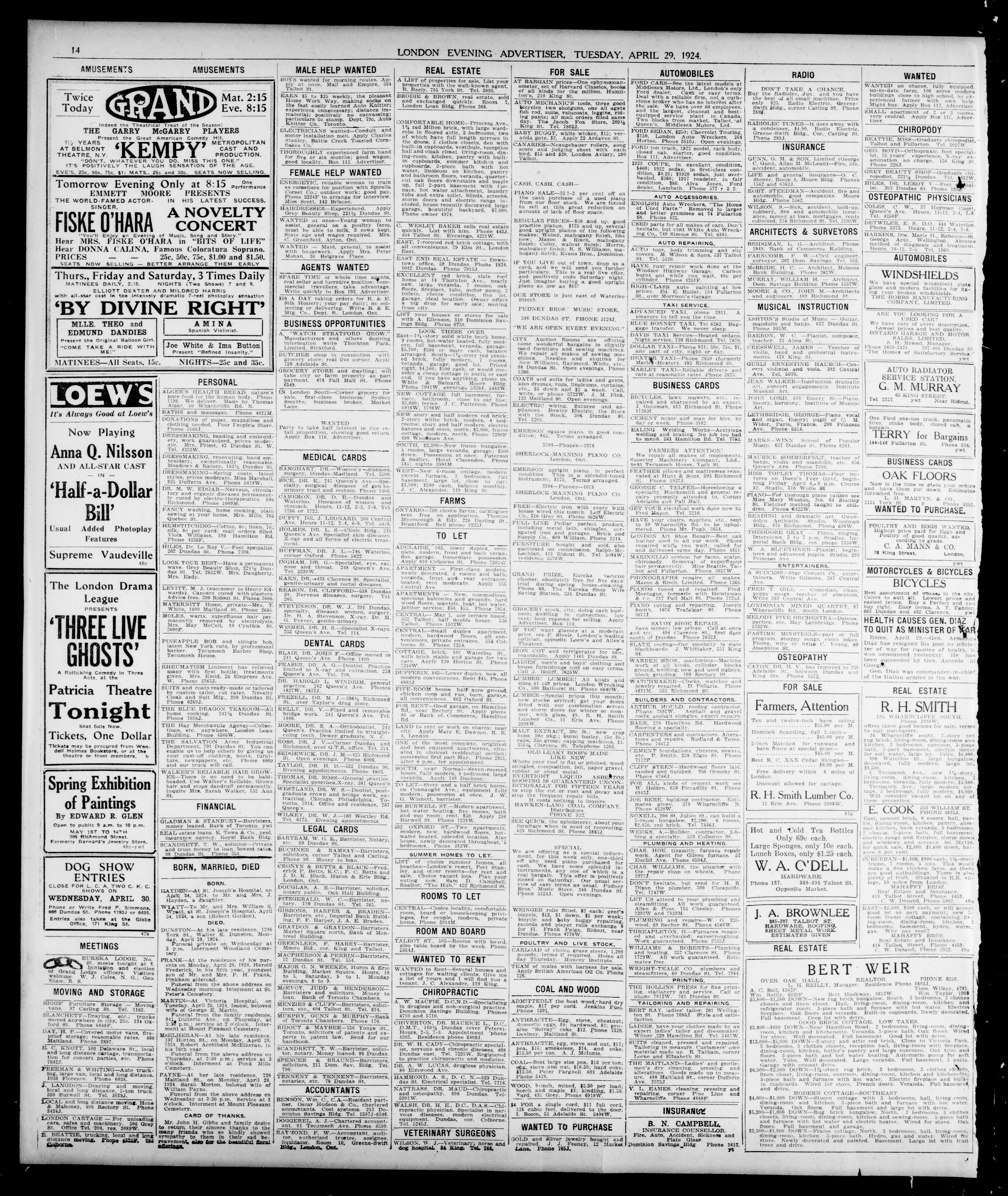 London Evening Advertiser. : London evening advertiser : 61st Year, No. 23949 (April 29, 1924)