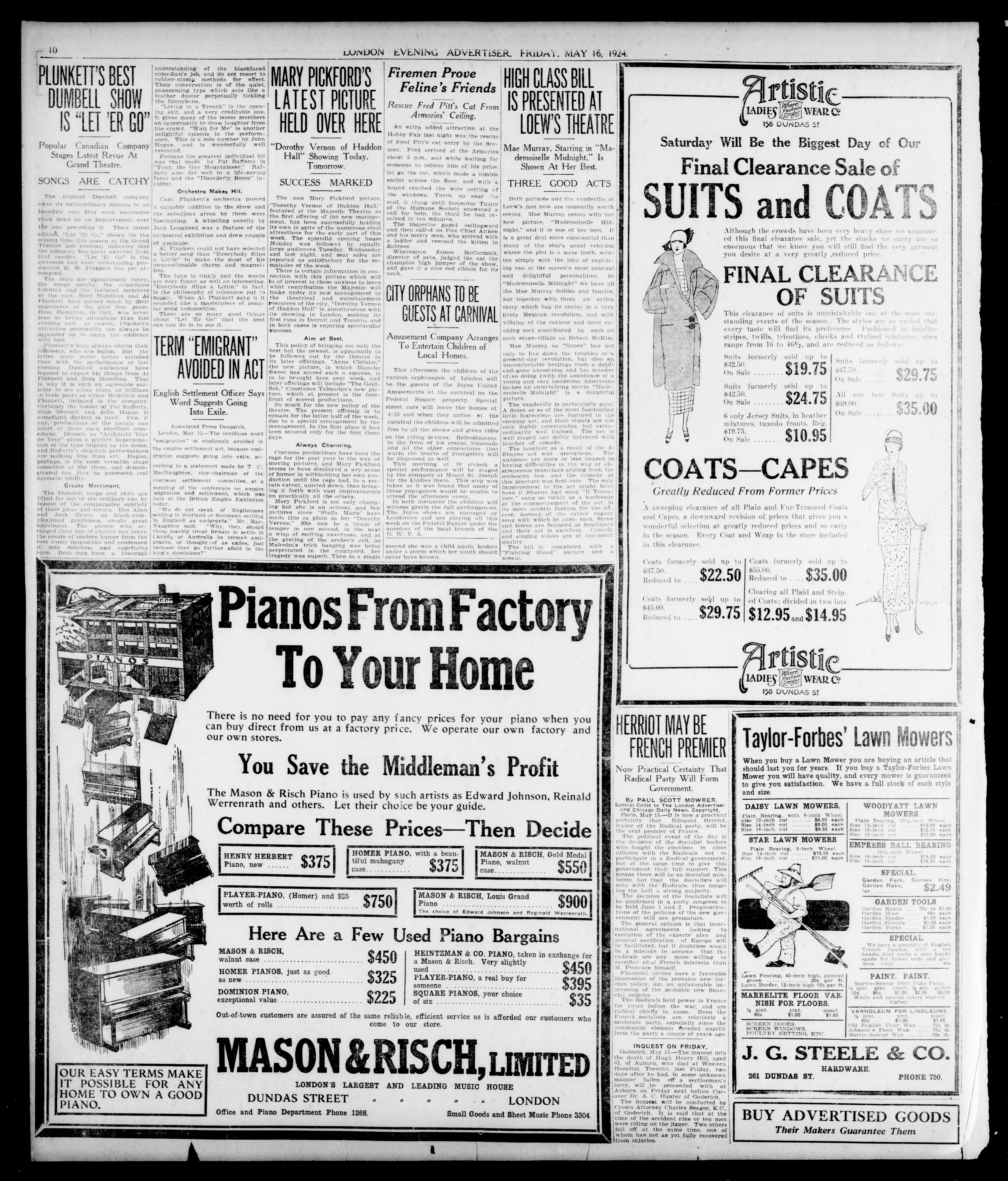 London Evening Advertiser. : London evening advertiser : 61st Year, No. 23963 (May 16, 1924)