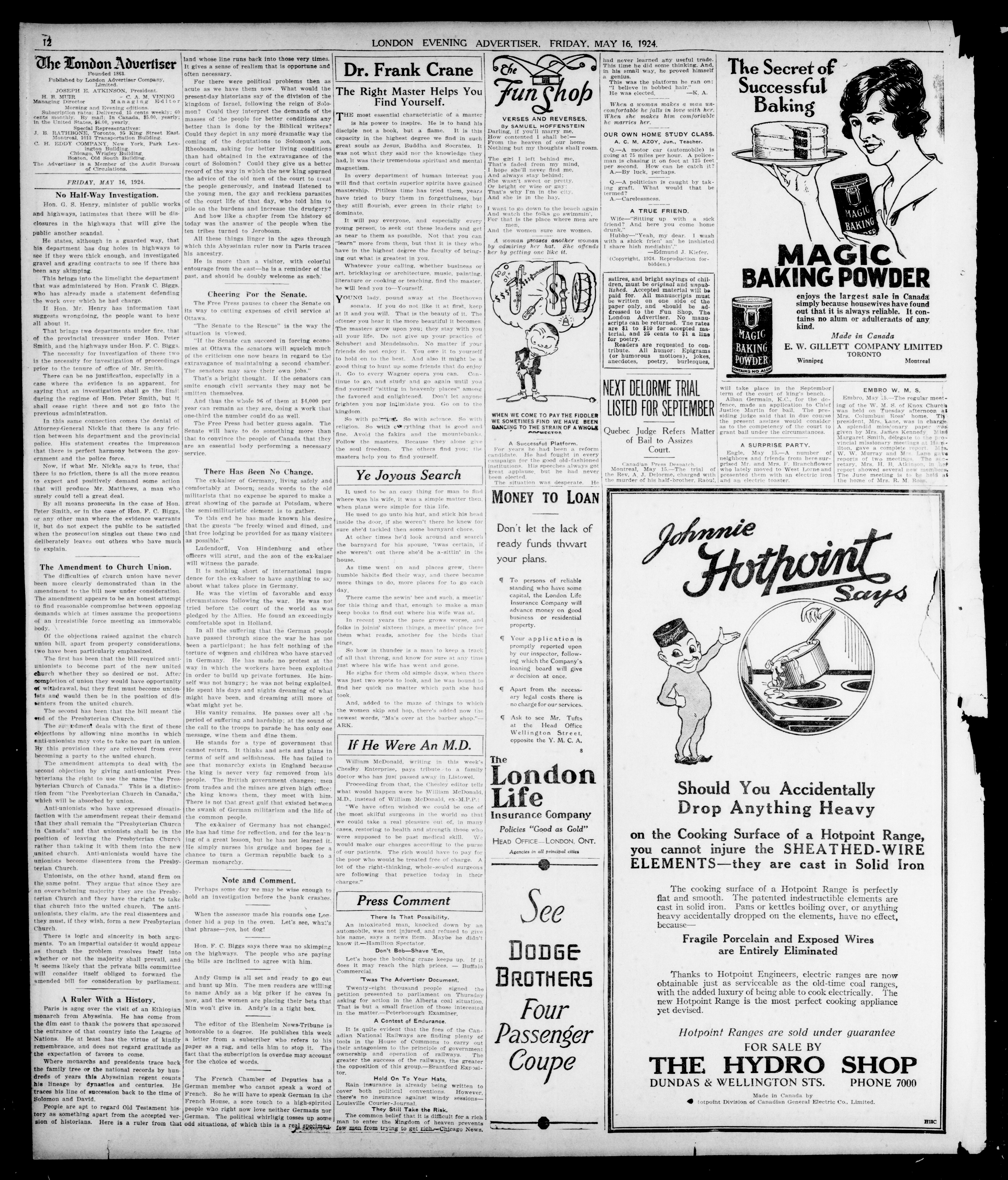 - London evening advertiser : 61st Year, No. 23963 (May 16, 1924)