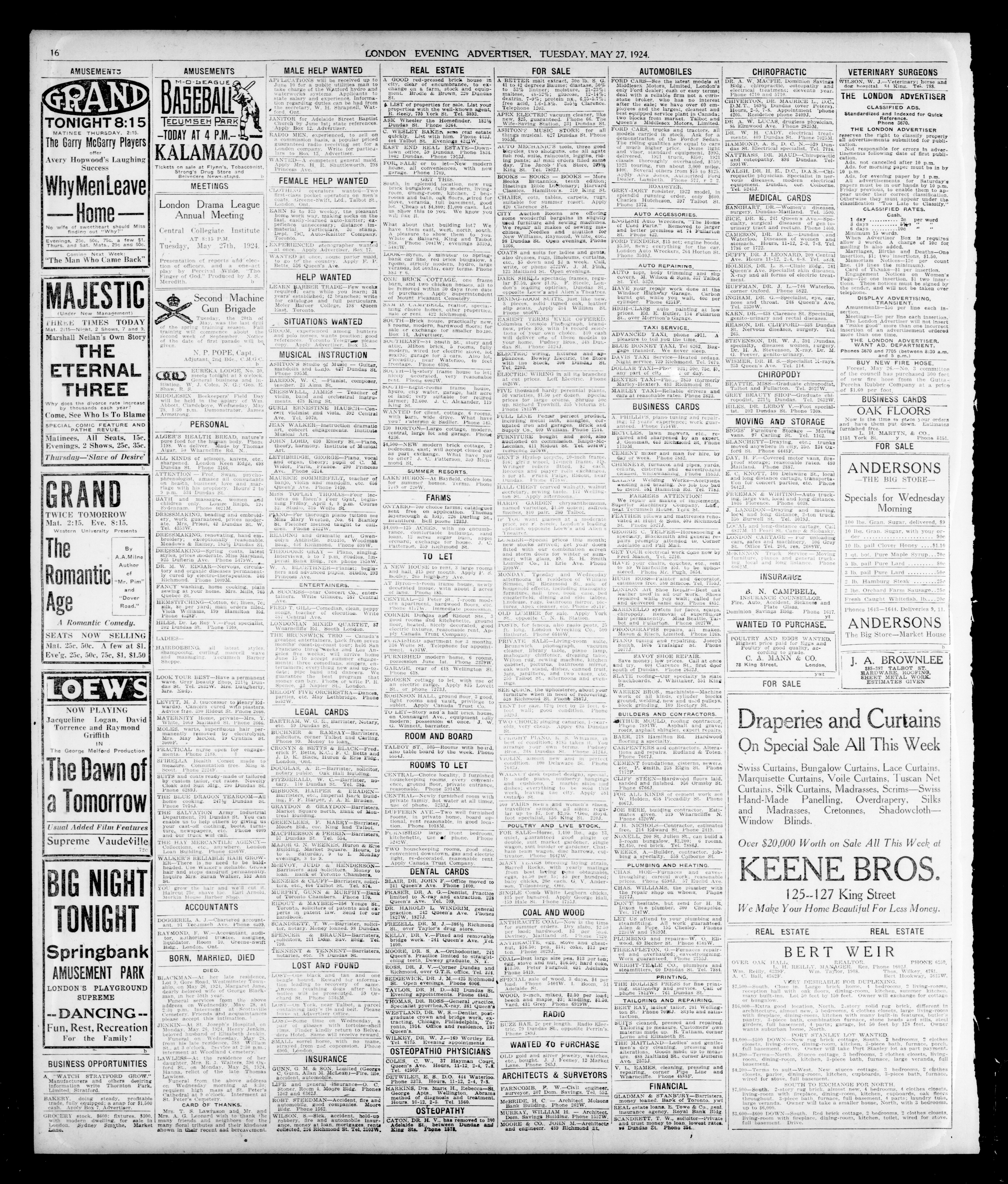London Evening Advertiser. : London evening advertiser : 61st Year, No. 23973 (May 27, 1924)