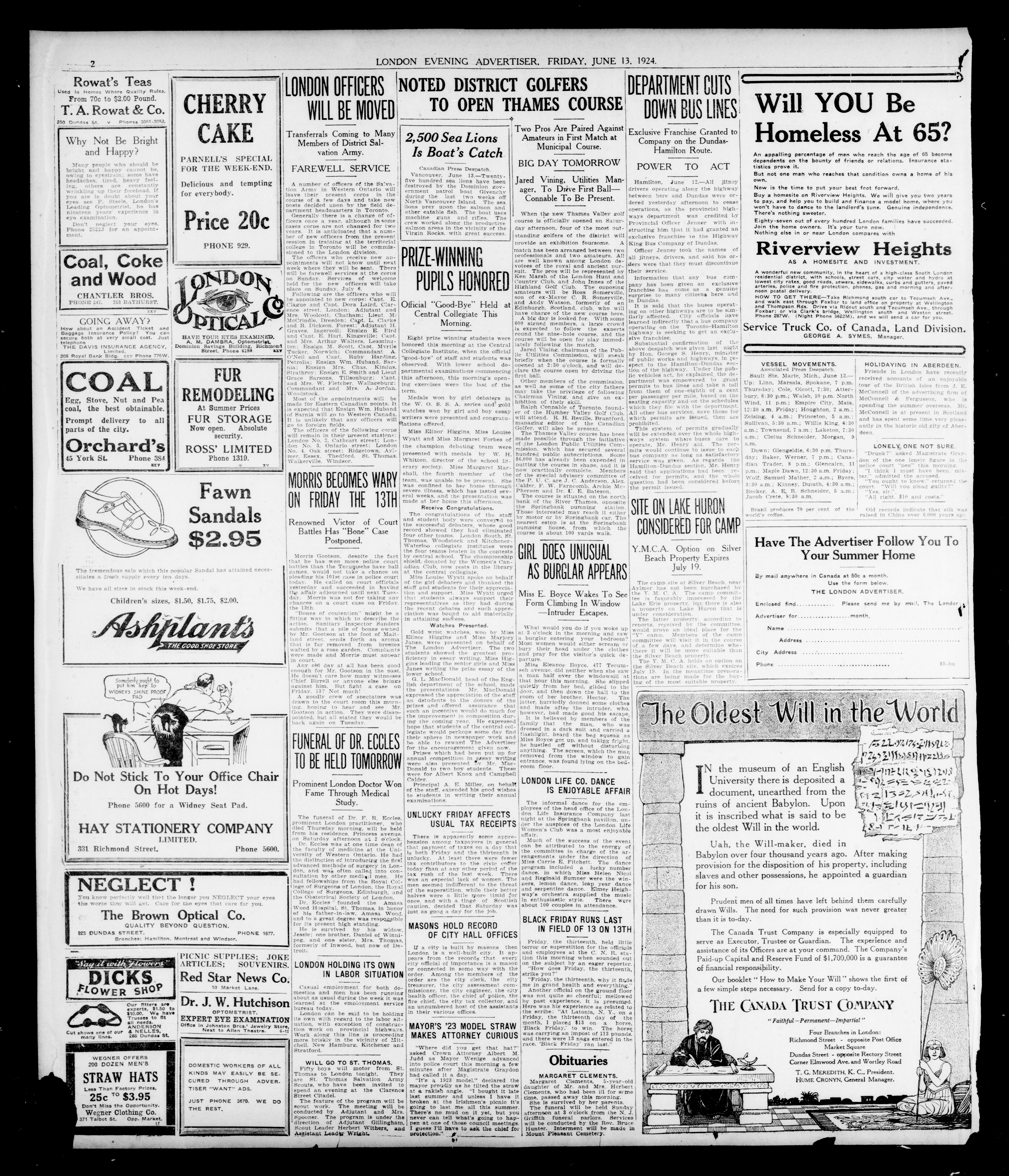 London Evening Advertiser. : London evening advertiser : 61st Year, No. 23988 (June 13, 1924)