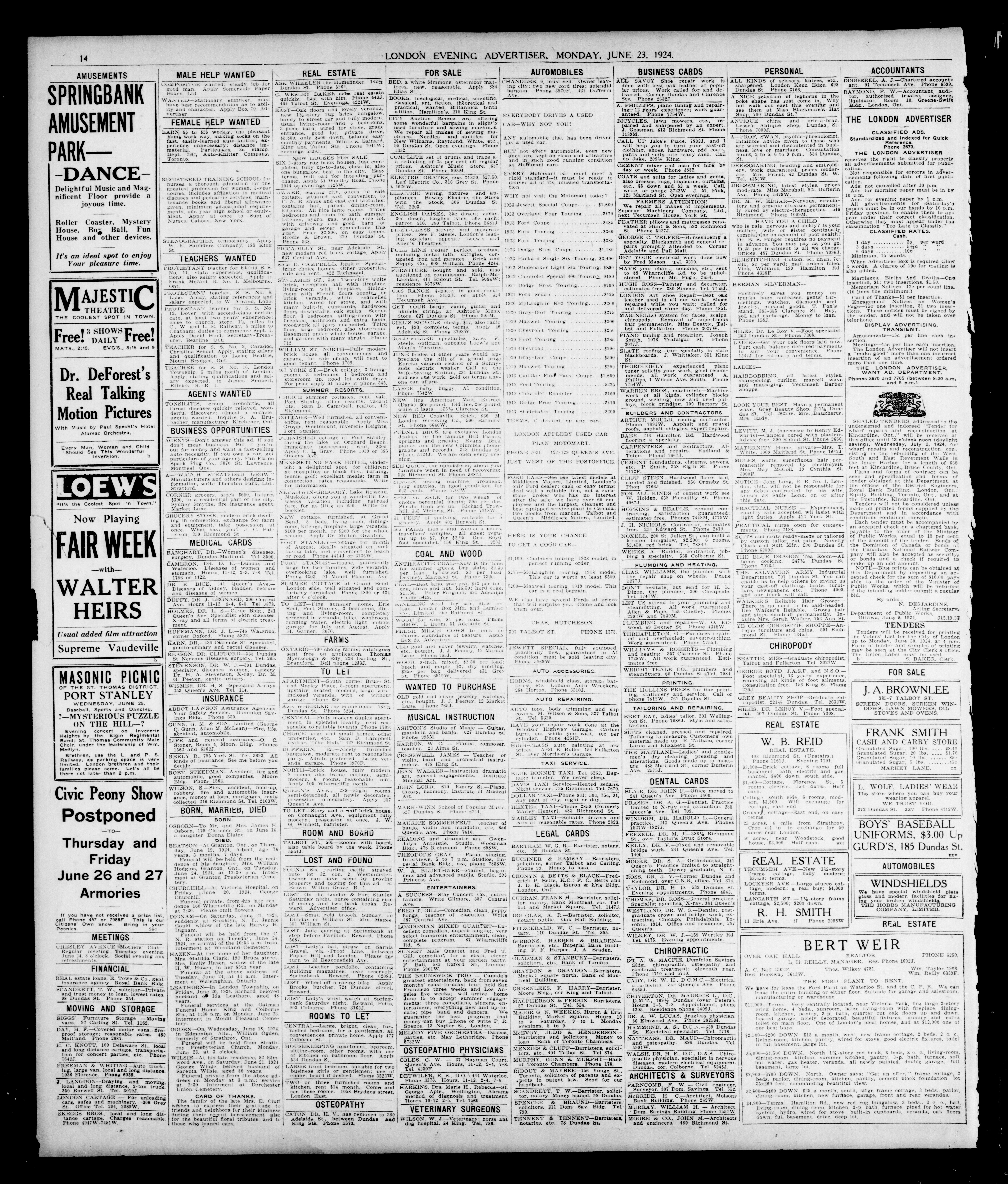 London Evening Advertiser. : London evening advertiser : 61st Year, No. 23996 (June 23, 1924)