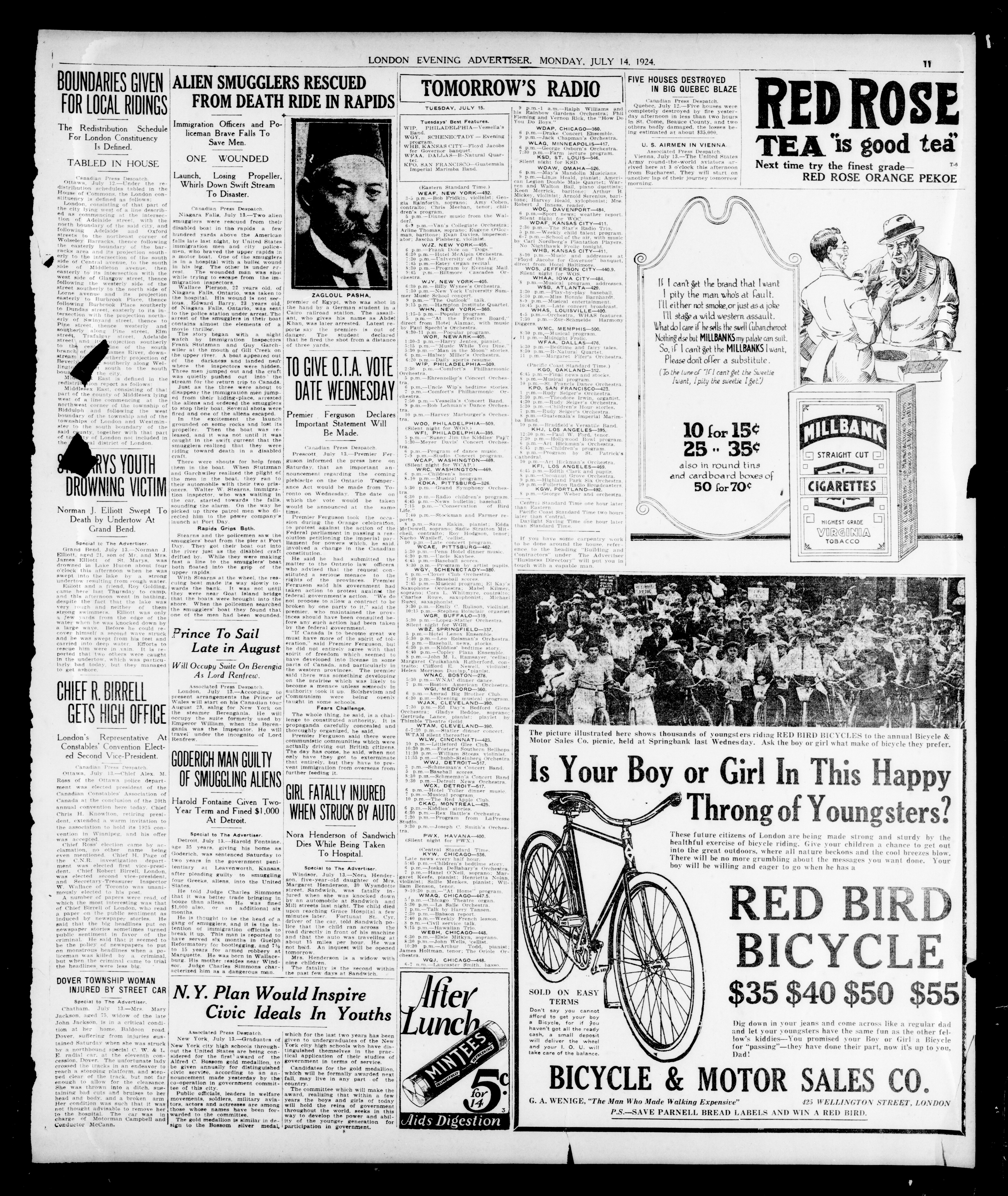 London evening advertiser : 61st Year, No. 24014 (July 14, 1924)